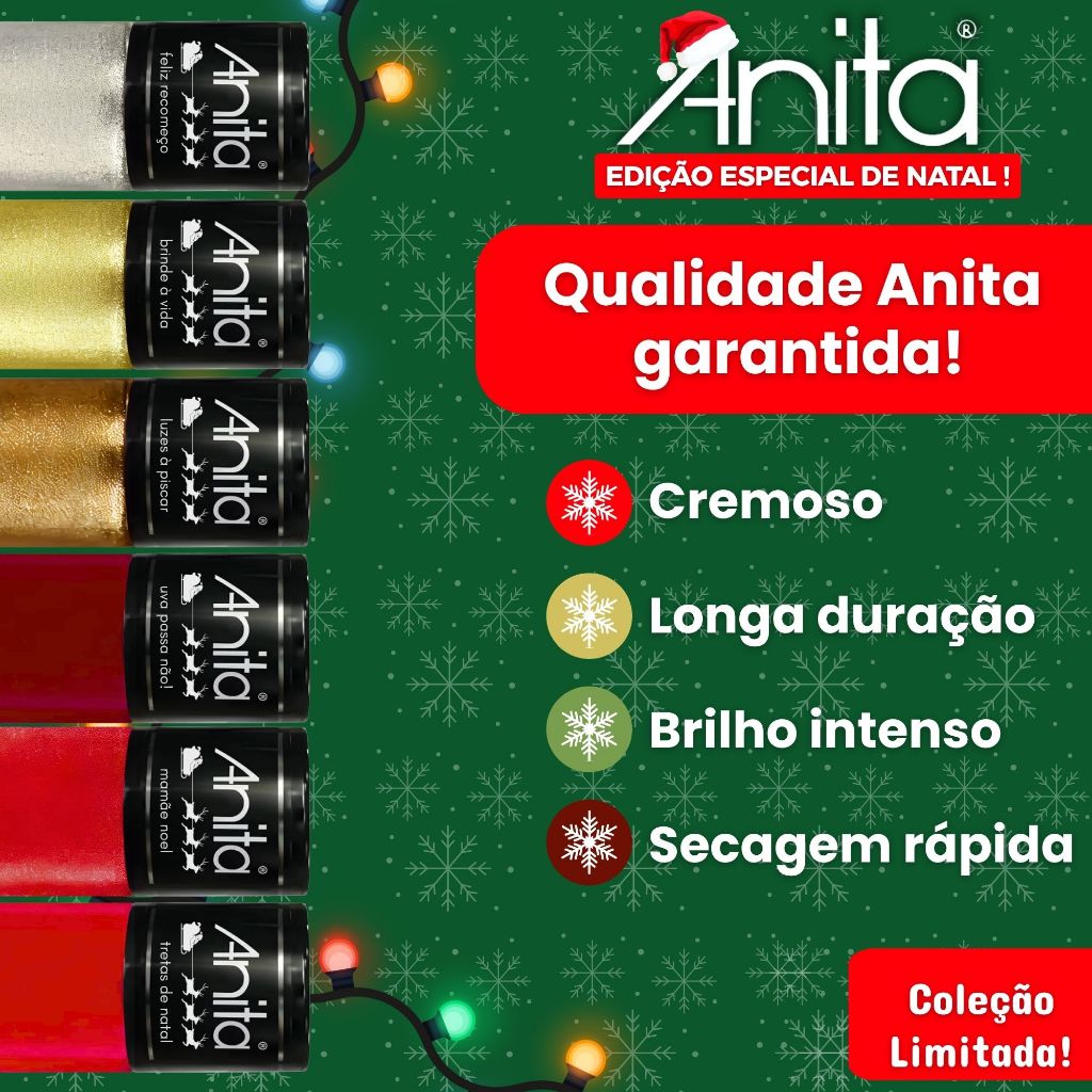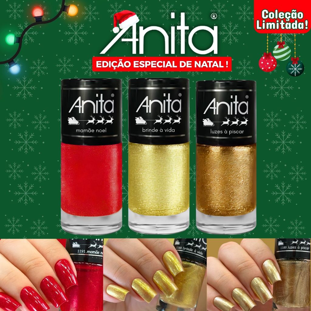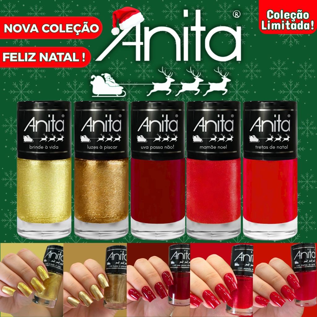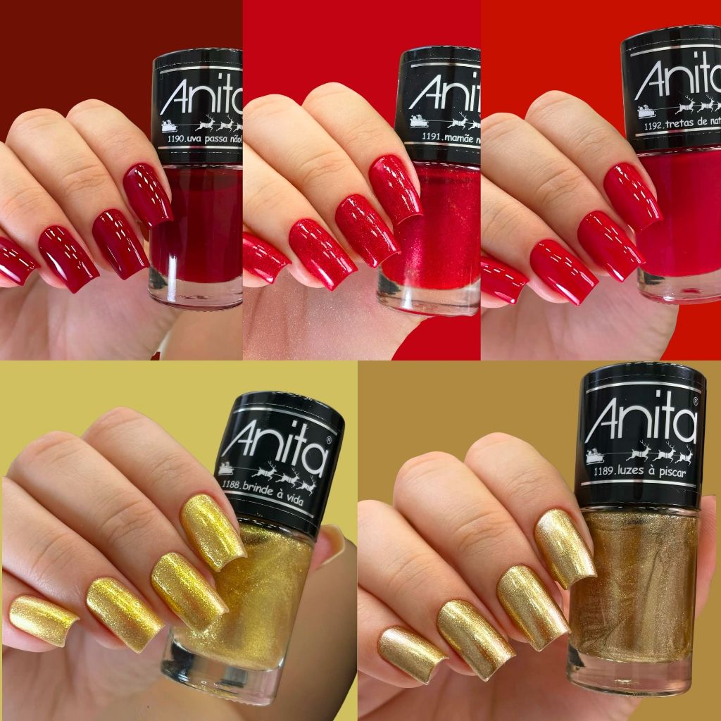 Kit 5 Esmaltes Anita Nova Coleção de Natal Edição Limitada Tons Vermelhos Dourados Prata