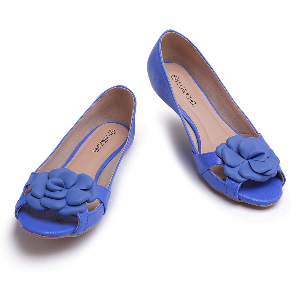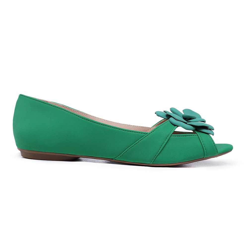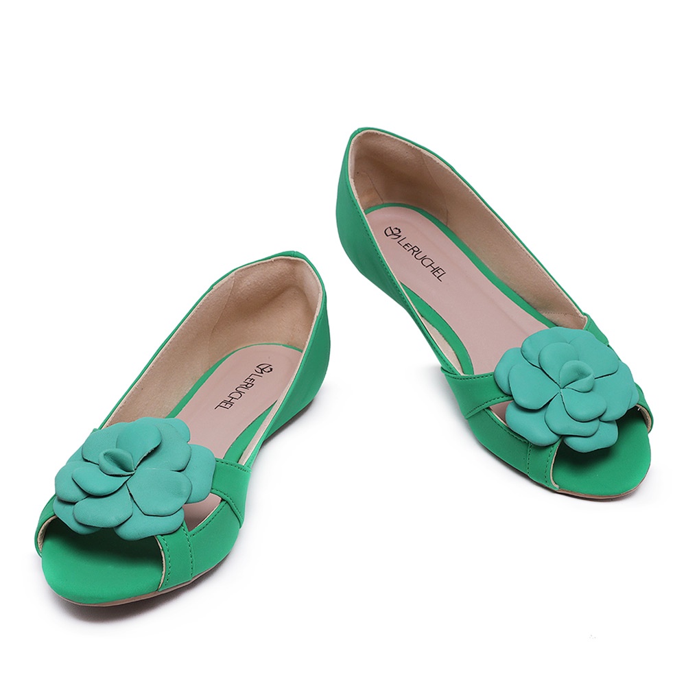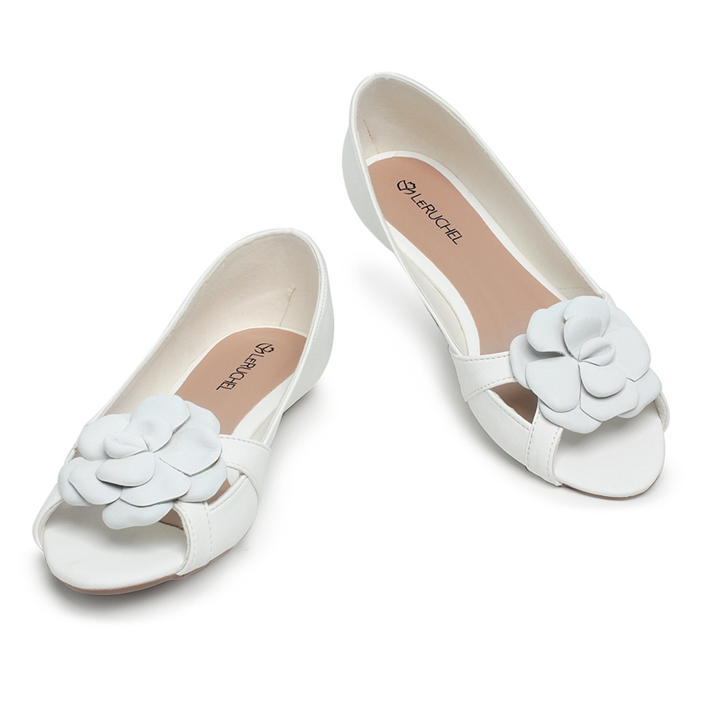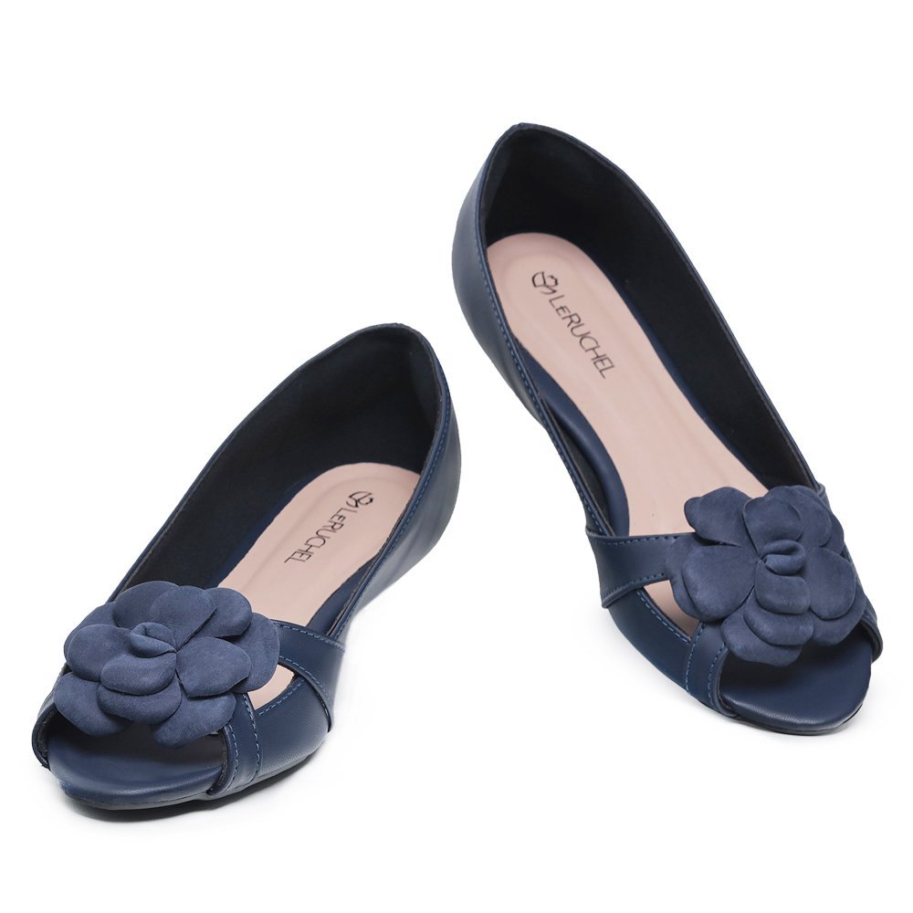 Sapatilha Peep Toe Feminina LeRUCHEL Flor Elegante Confortável