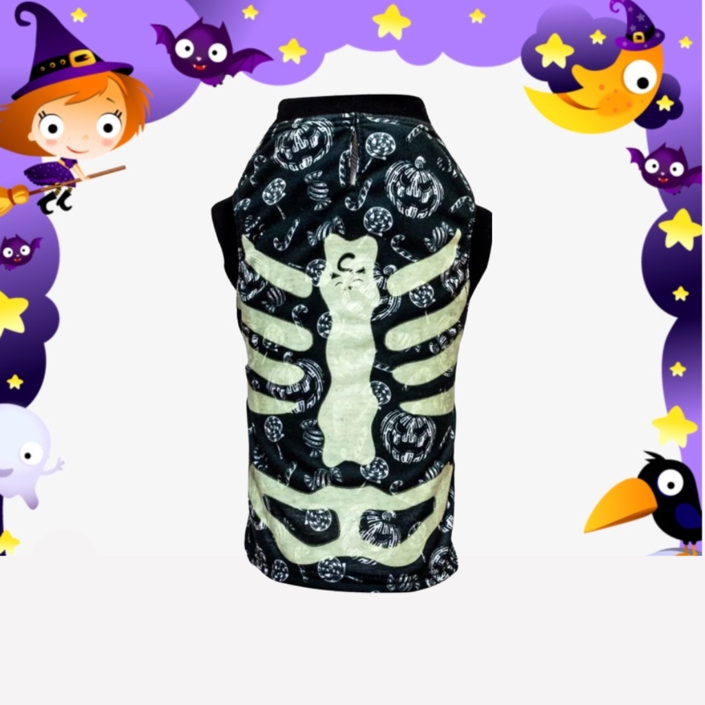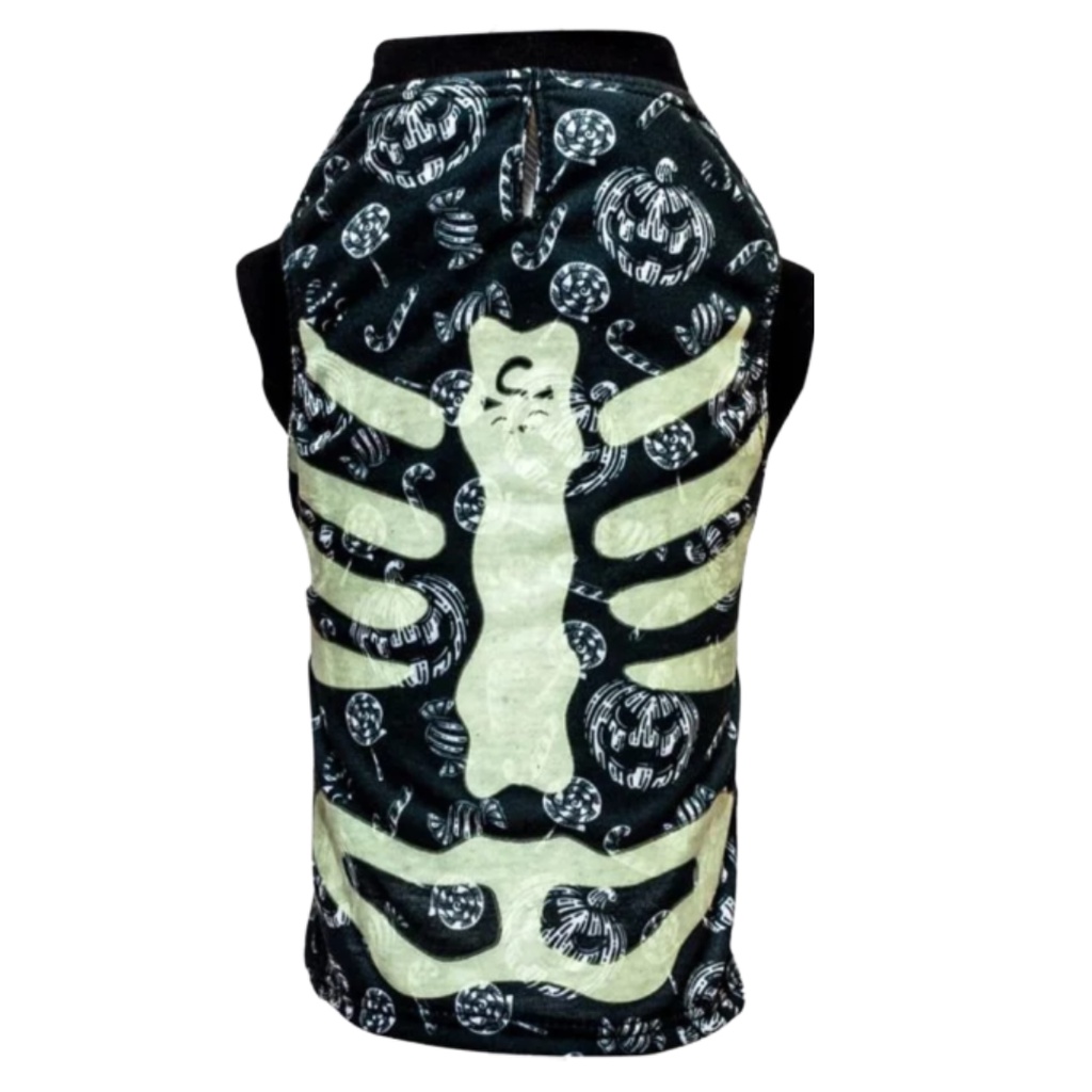 Roupa Fantasia Halloween para Cachorro e Gato - Neon Esqueleto Preto Brilha no Escuro - Mascote