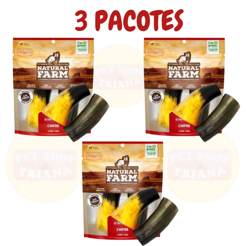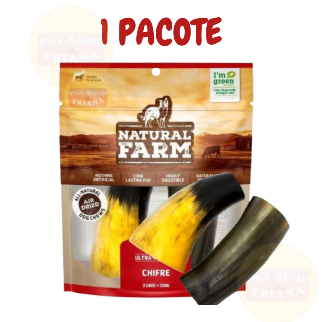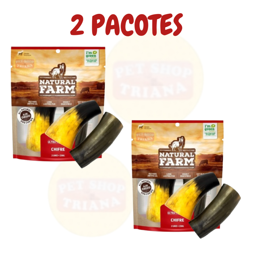 Chifre Desidratado Bovino Pacote2 unidades 238g Mordedor Natural - Natural Farm