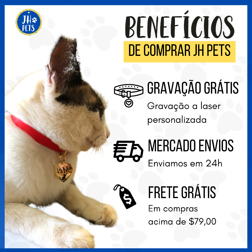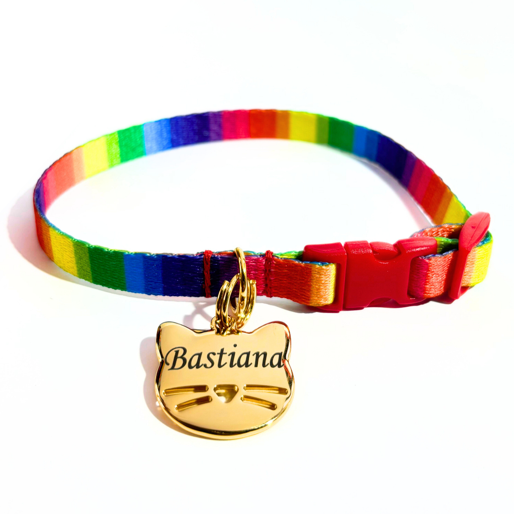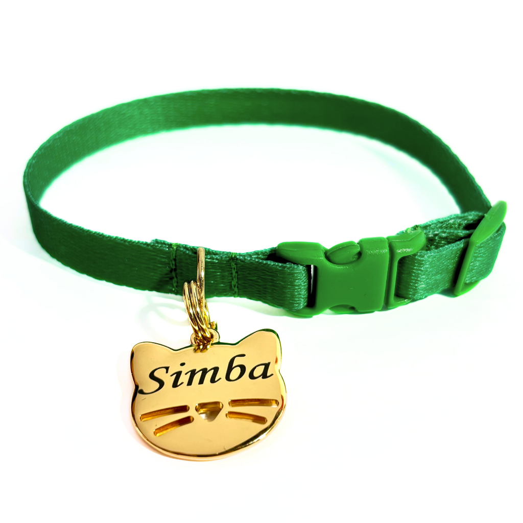 Coleira para gato de luxo dourado com nome gravado e telefone