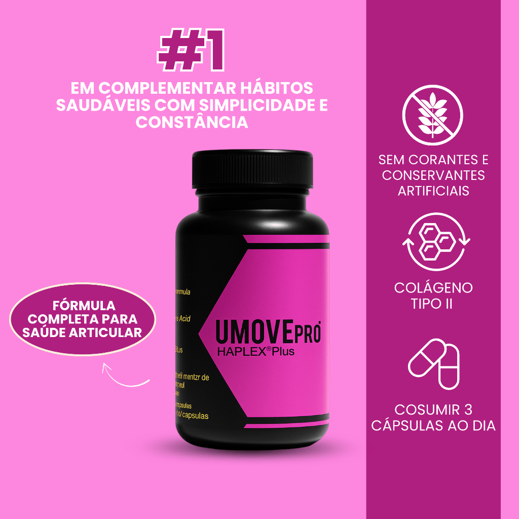 UMOVE Pro: Suplemento Inteligente para Articulações - Colágeno Tipo II - 90 Cápsulas