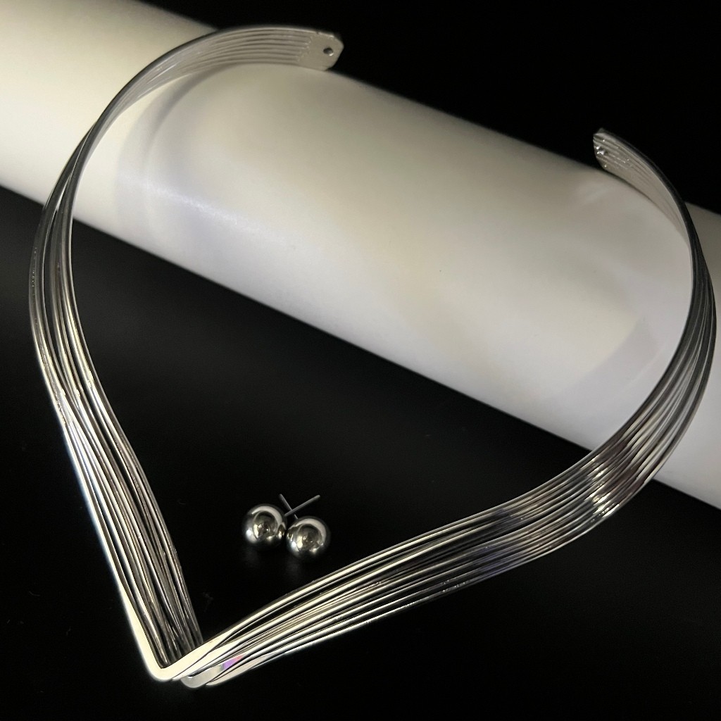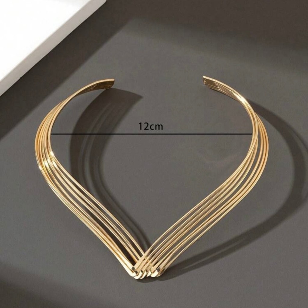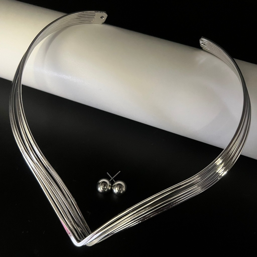 Kit Choker Aro V e Brinco Liso Moda Casual Moderno Ouro Prata