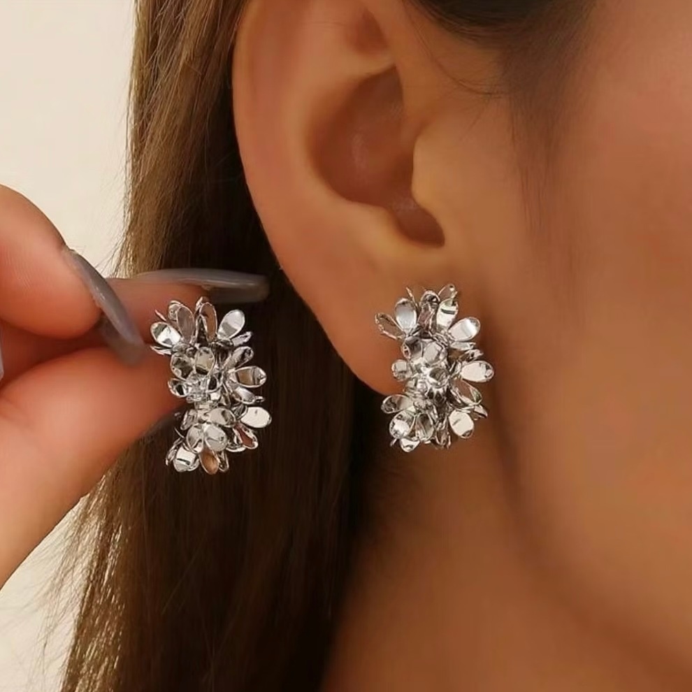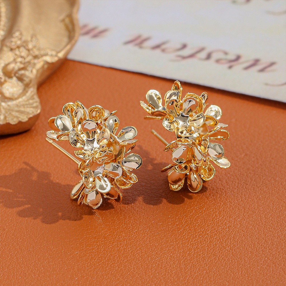 Brinco Flor de Luxo – Semijoia folheada a ouro e prata | Estilo europeu elegante