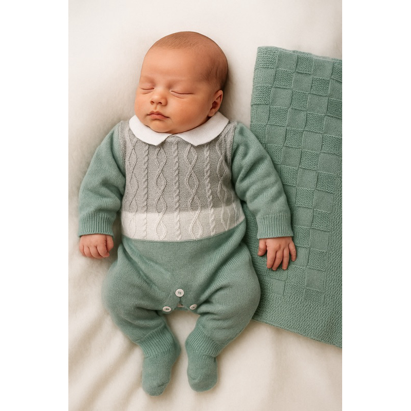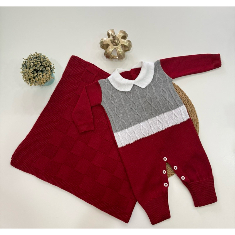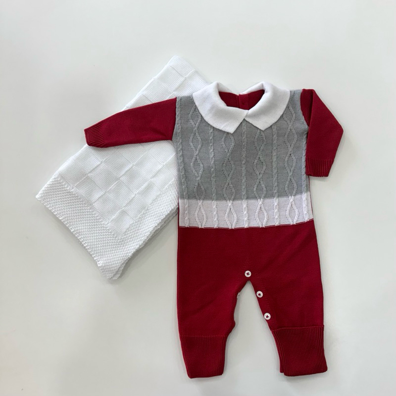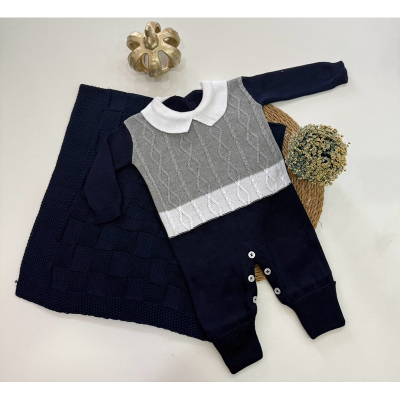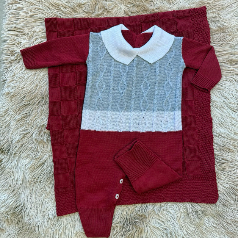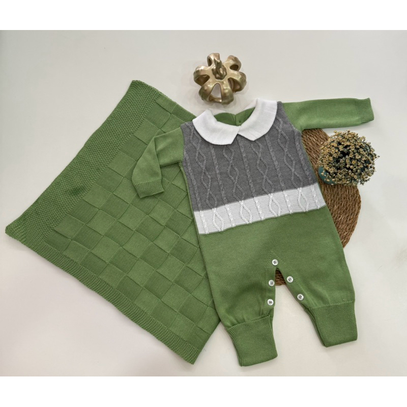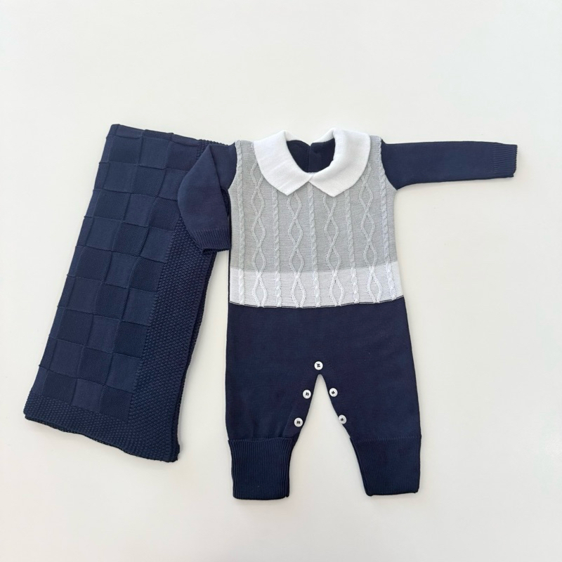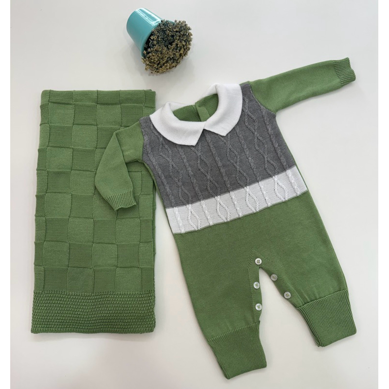 Kit Saída Maternidade Tricô Manta+Macacão P/ Bebê Menina e Menino