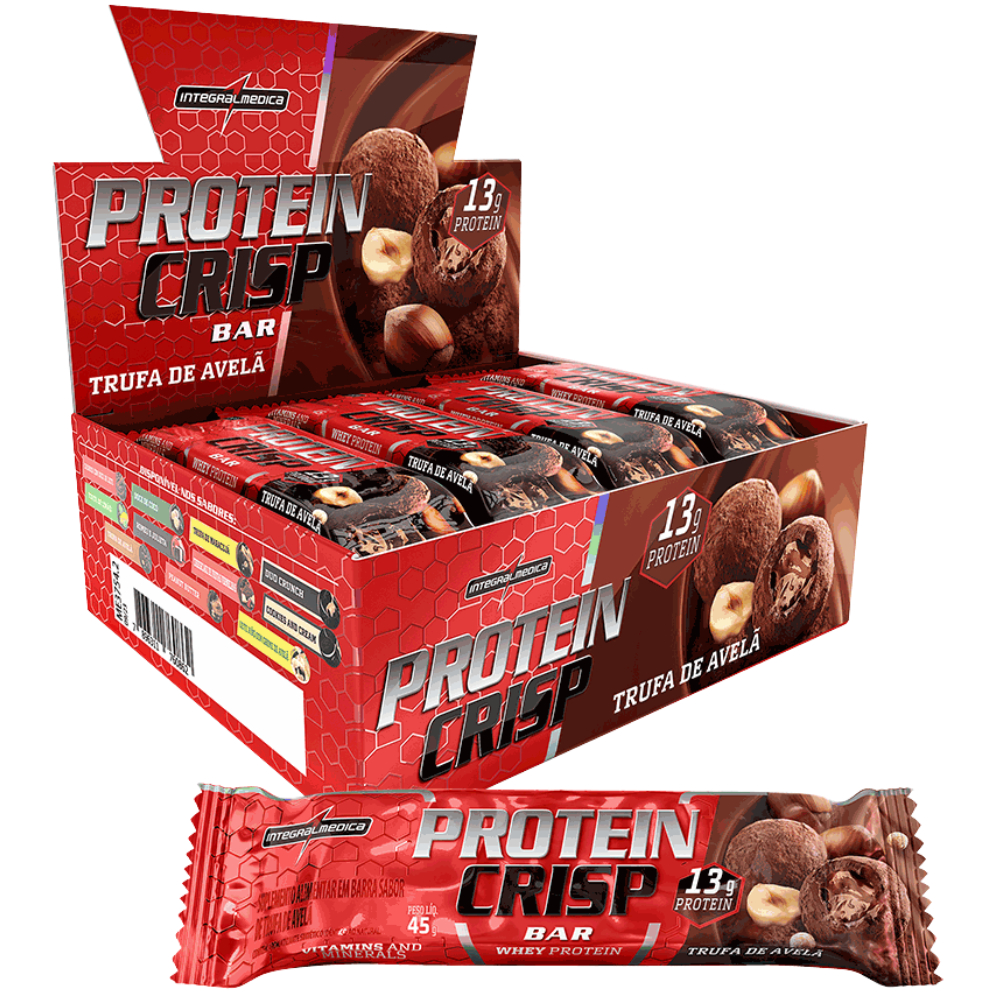 Display Kit Caixa Barra De Proteína Protein Crisp 55g 12 Unidades Com Whey Protein Integralmedica