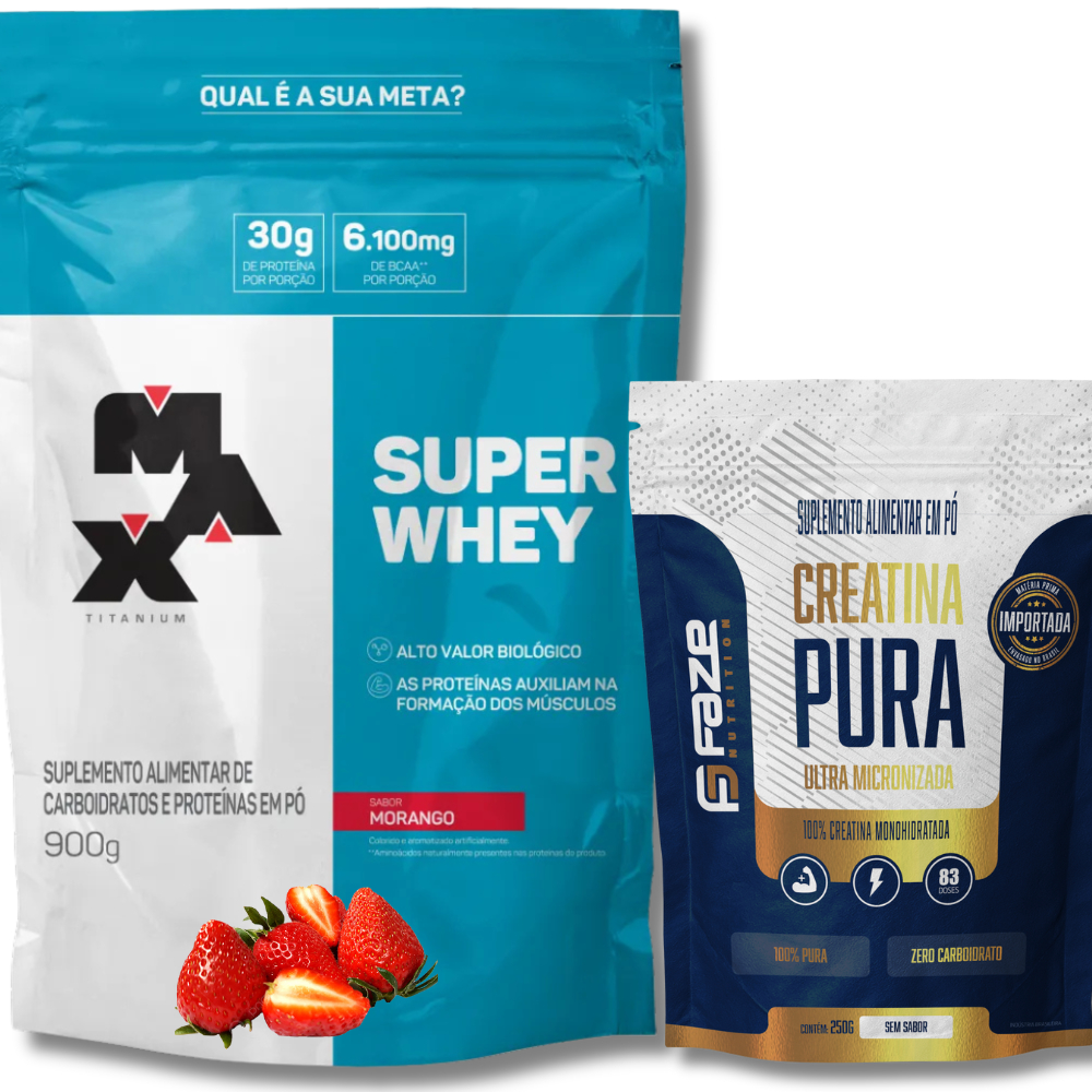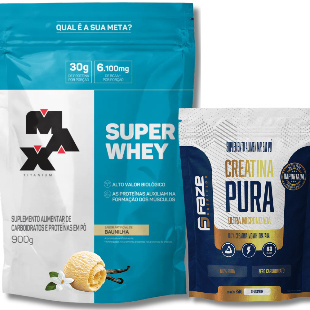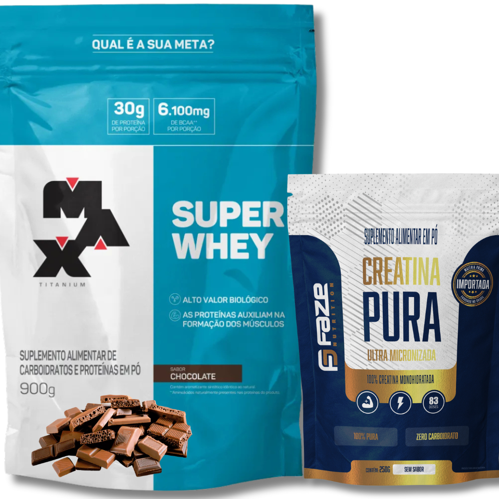 Kit Super Whey Proteína Concentrada 900g + Creatina Pura Monohidratada 250g Faze Nutrition