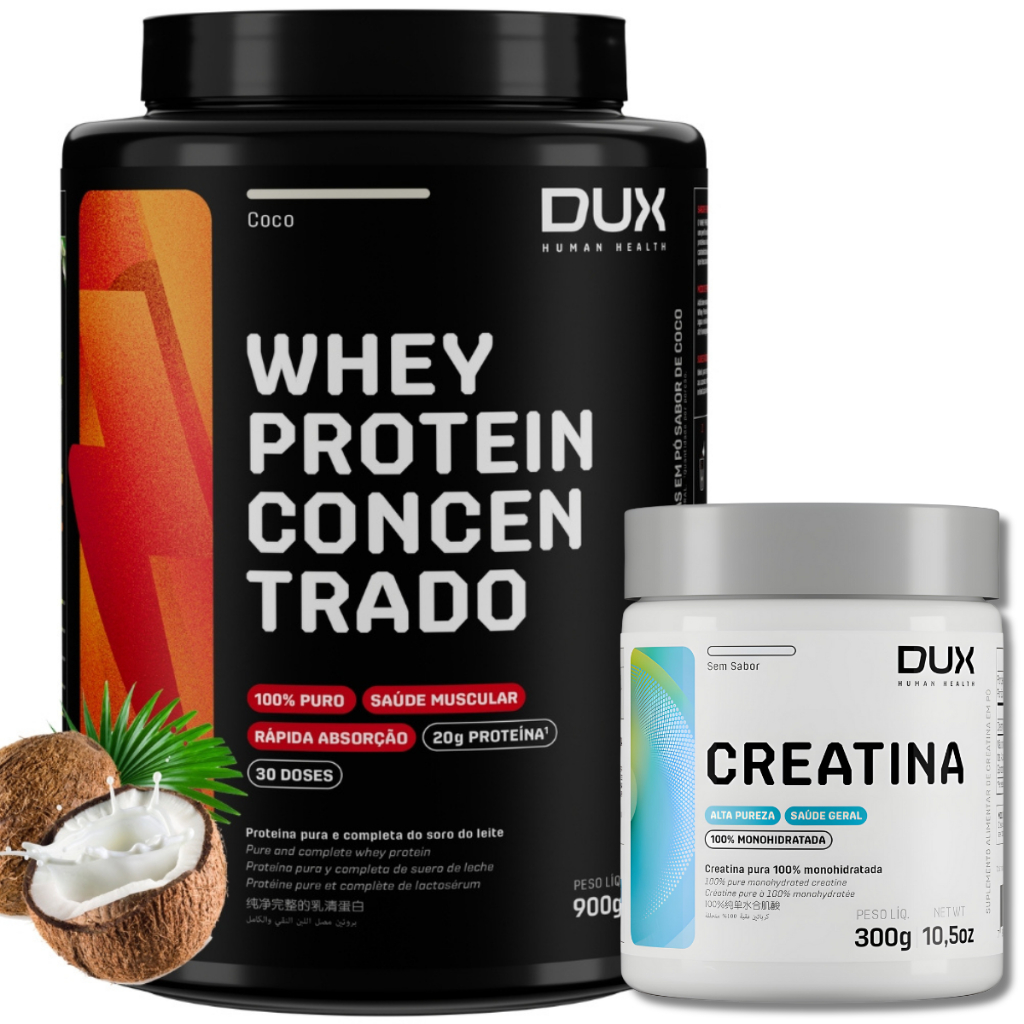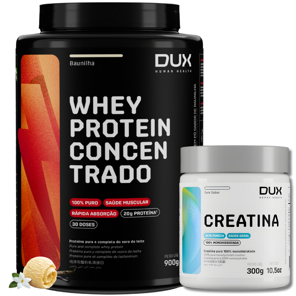 Kit Whey Protein Concentrado 900g + Creatina Monohidratada 300g Dux Human Health