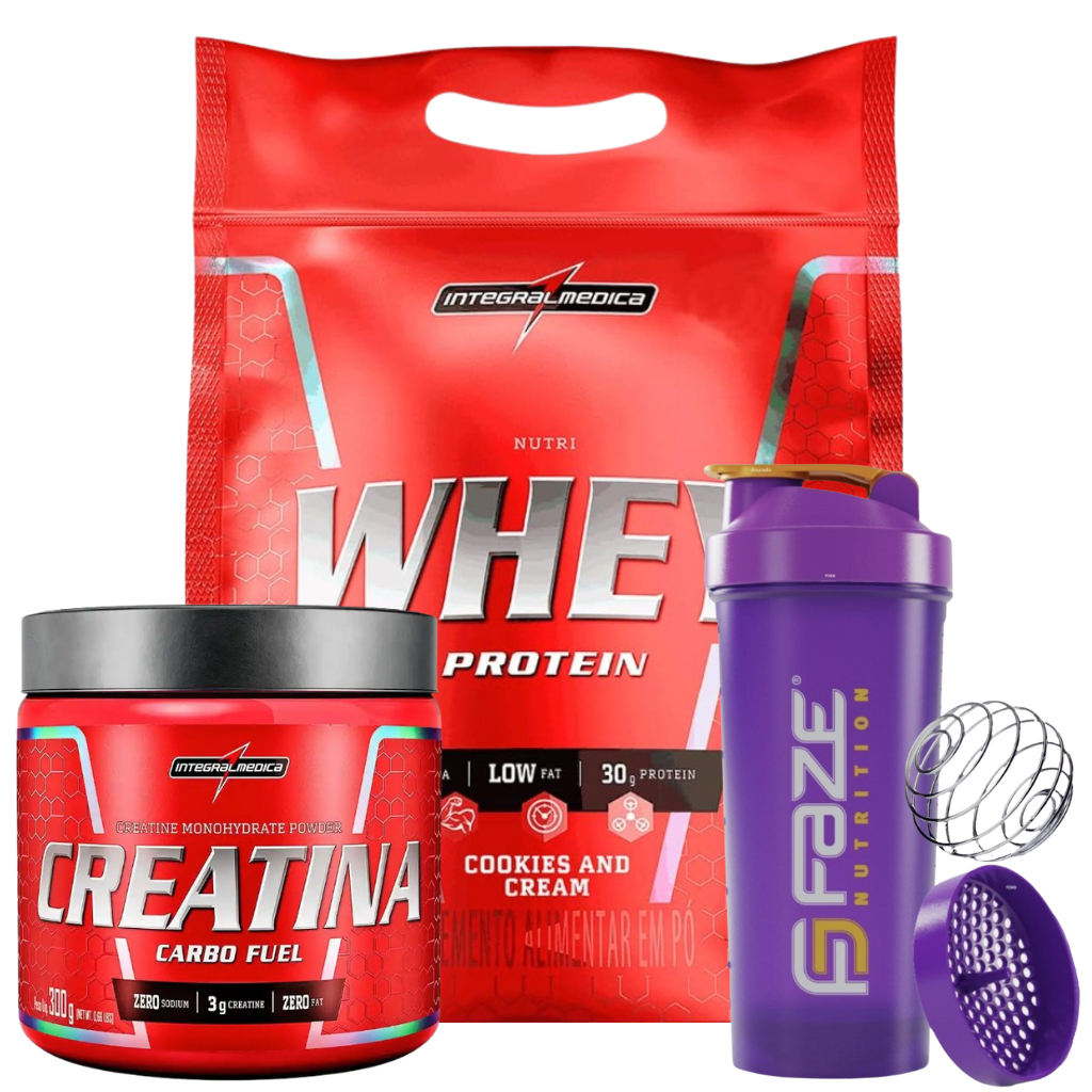 Kit Nutri Whey Refil 900g + Creatina CarboFuel 300g + Coqueteleira
