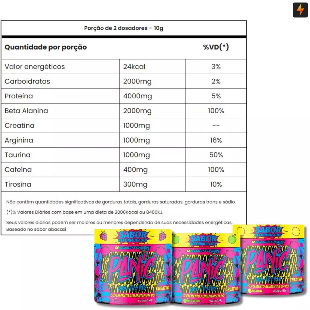 Panic Pré Treino 150g Adaptogen Com Creatina e 400mg de Cafeína + 2g de Beta Alanina