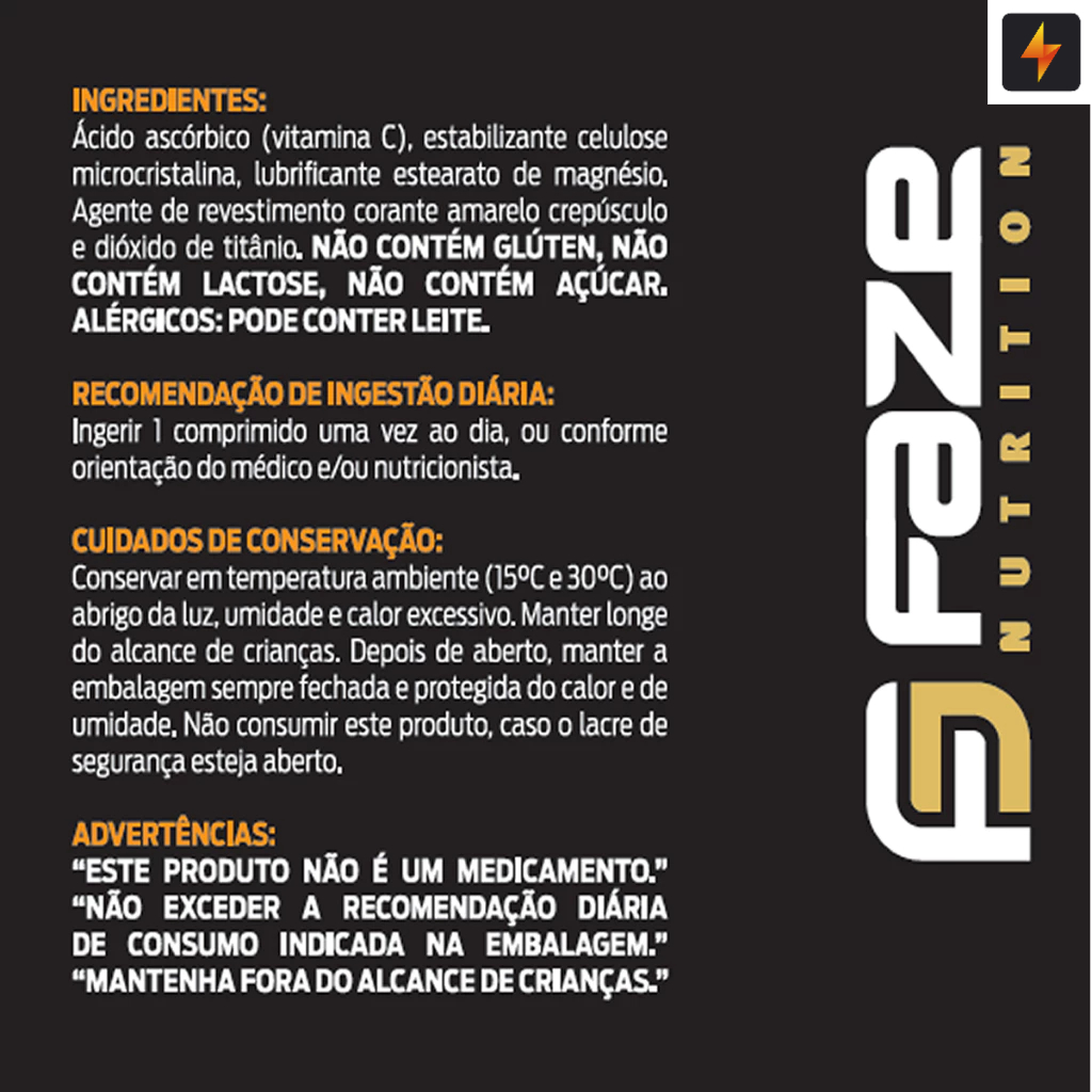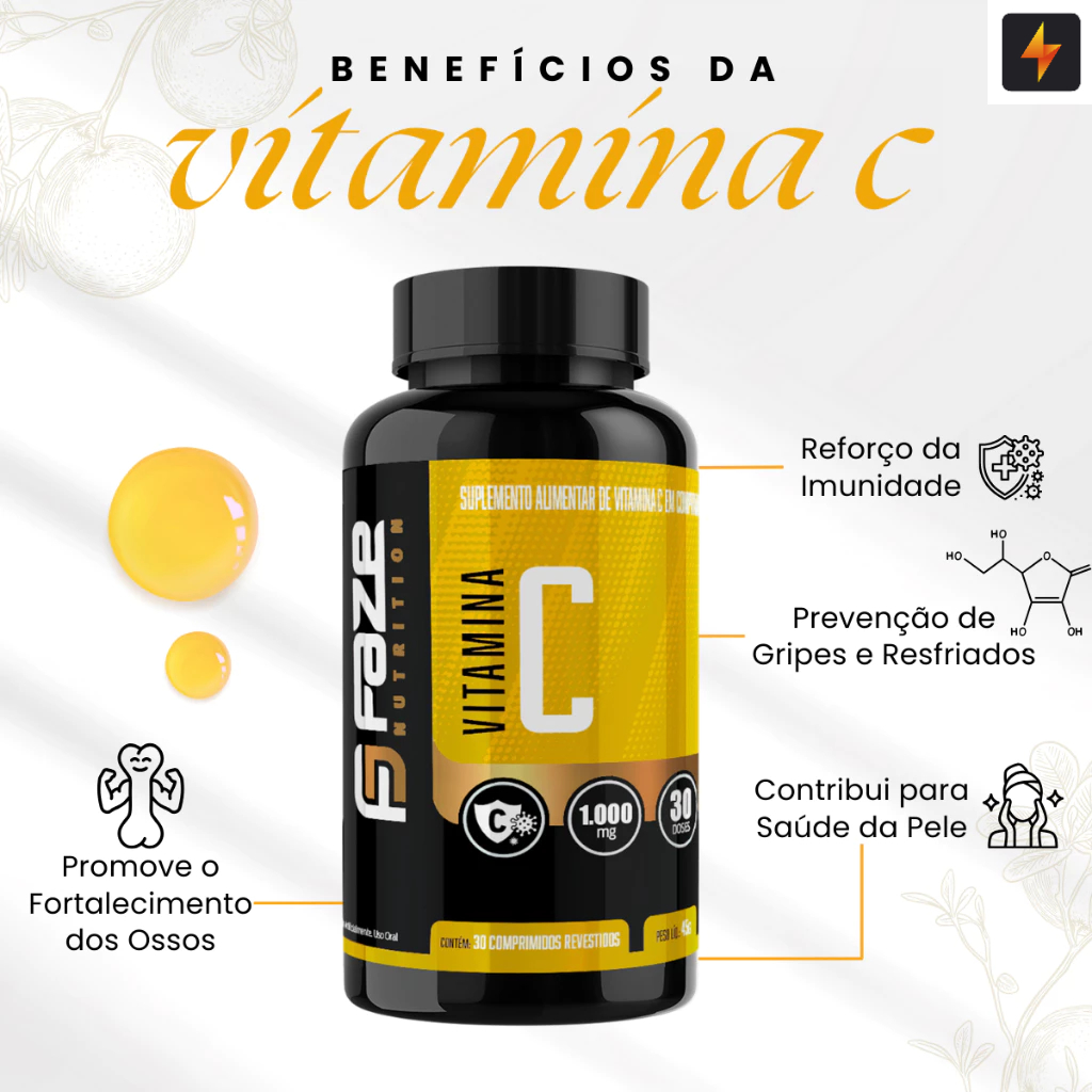 Vitamina C 1000mg 100% Pura 30 comprimidos rápida absorção Faze Nutrition