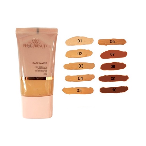 Kit Base Matte Alta Cobertura PhalleBeauty + Pincel Hexágono Para BB Cream/Blush Em Pó , Base QBM00804