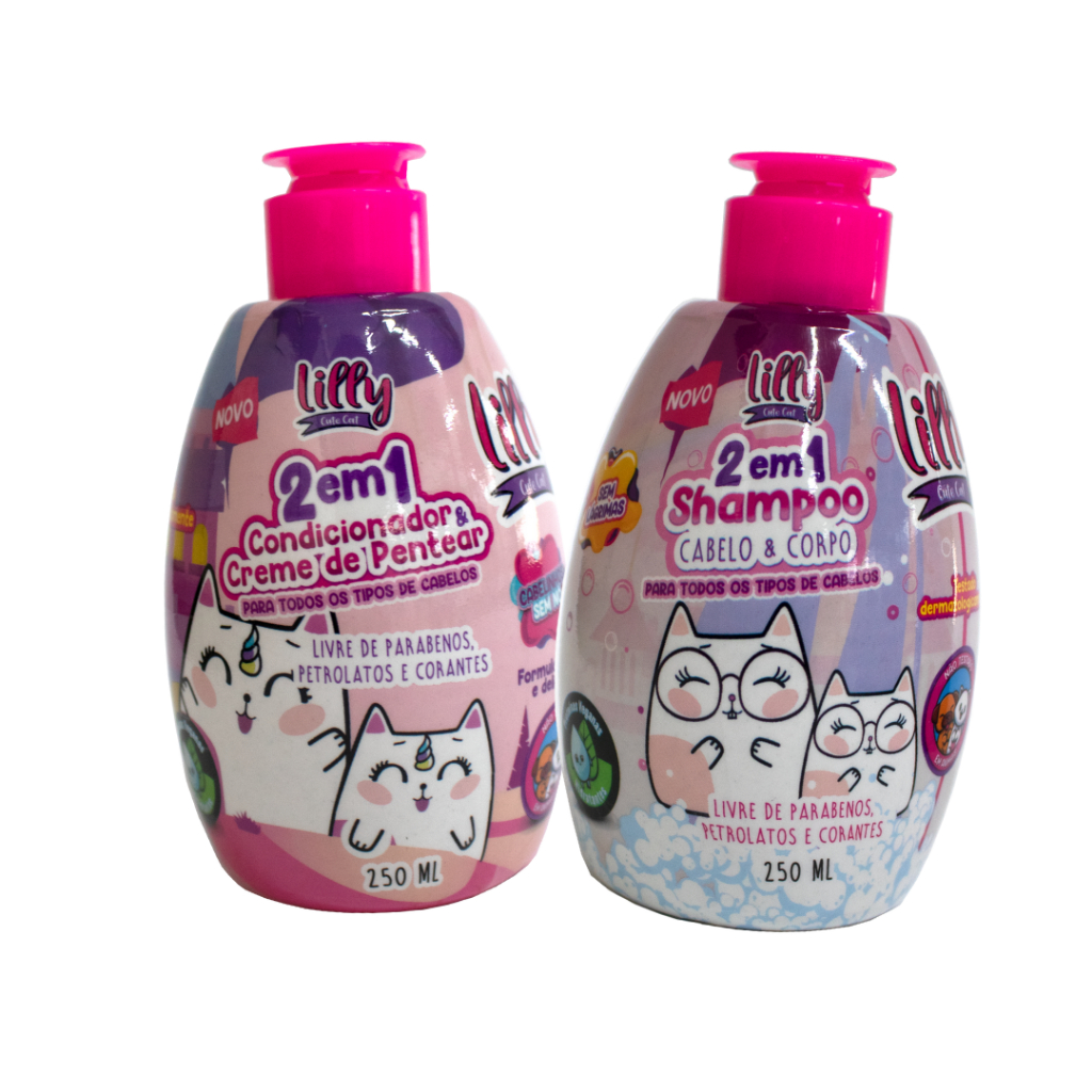 KIT SHAMPOO 2 EM 1 CABELO E CORPO E CONDICIONADOR 2 EM 1 LILLY CUTE CAT