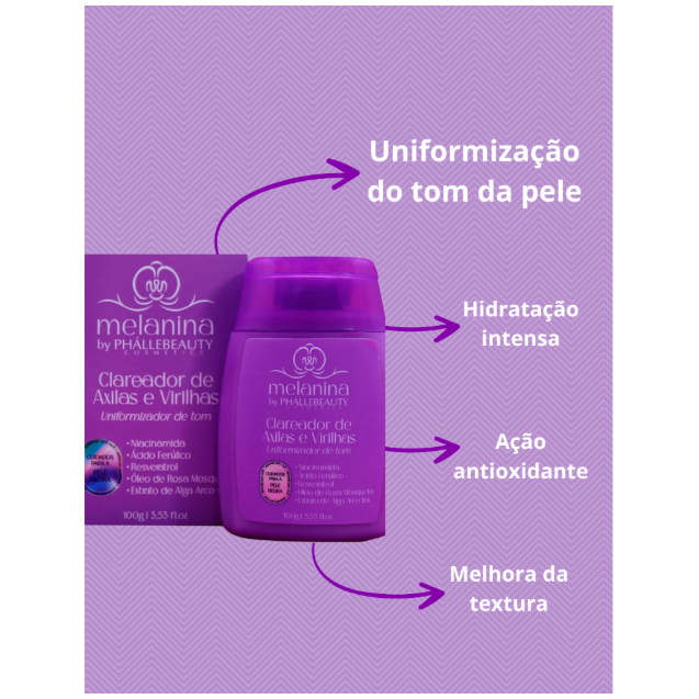 Kit Clareador de Axilas e Virilhas + Máscara Facial Calmante Melanina PhálleBeauty