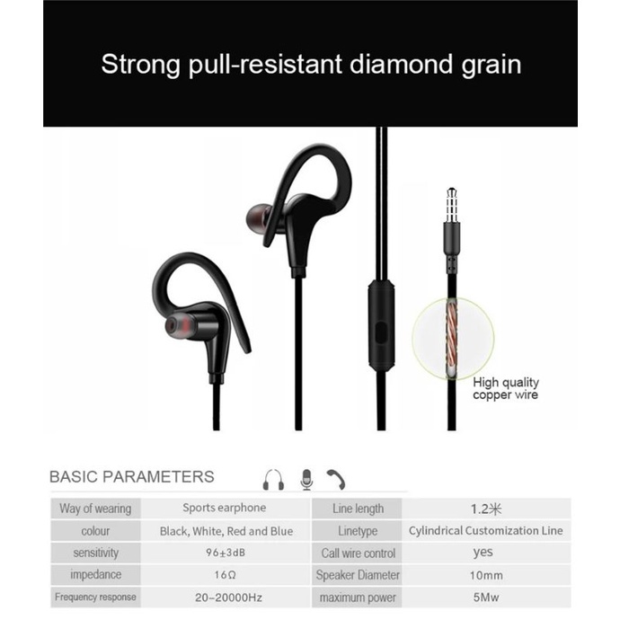 Fone de ouvido cabo estéreo esportivo esportes caminhada corrida com ganchos para orelhaAL-E11/T1