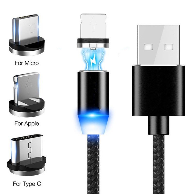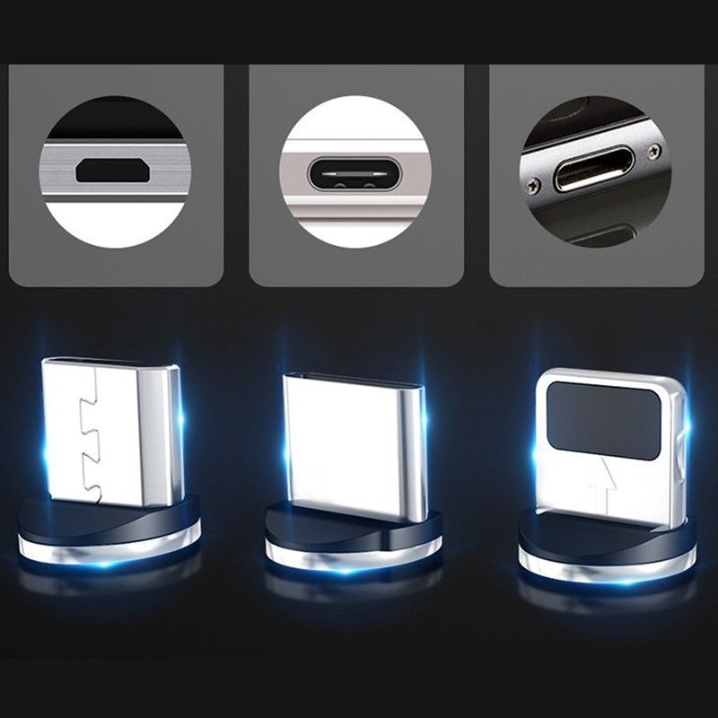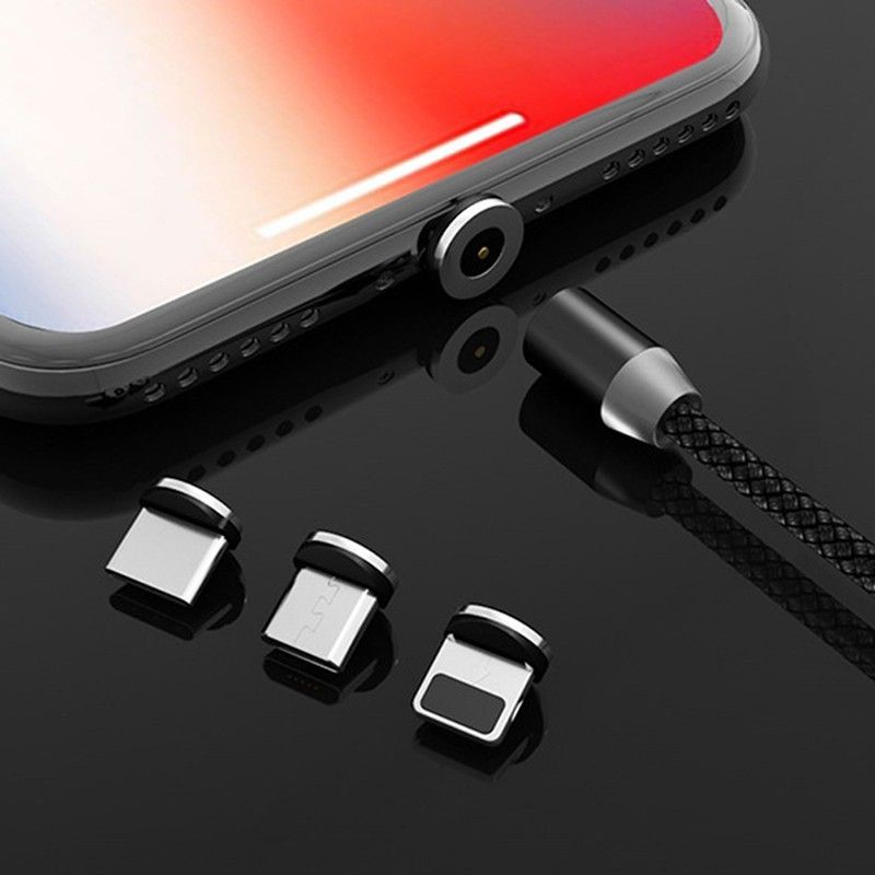 1 Cabo + 3 Plugues Rápido Magnético Usb-C Tipo C / Ios / Micro 360 Redondo Com Carregador Rápido 1m