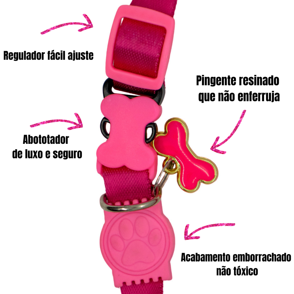 Coleira Pet Cão E Gato Ajustável Com Pingente Luxo