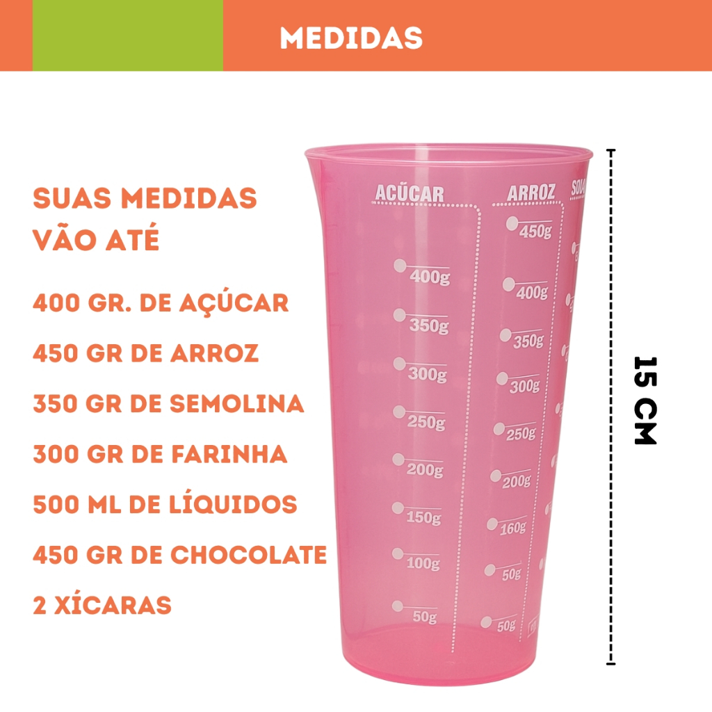 kit com 2 e 1 Copos Medidor de cozinha Graduado Dosador Receitas 500 Ml Não erre a medida das suas receitas