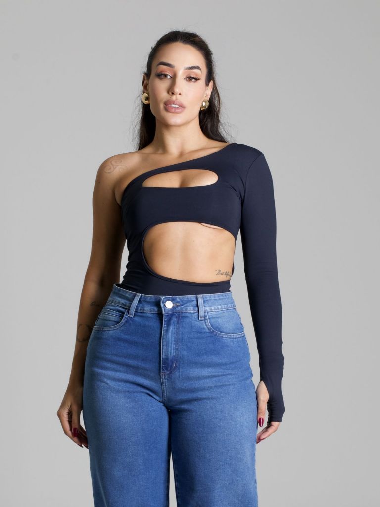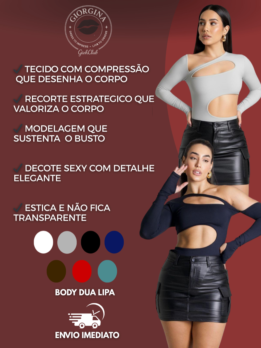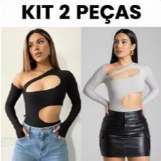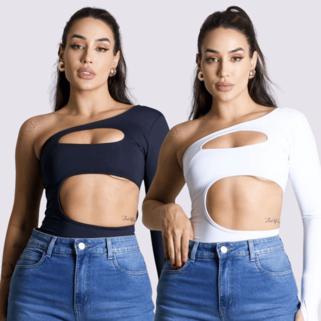 KIT 2 Body Feminino com Recortes Manga Longa moda gringa Sexi Elegante Moda Gringa TikTok