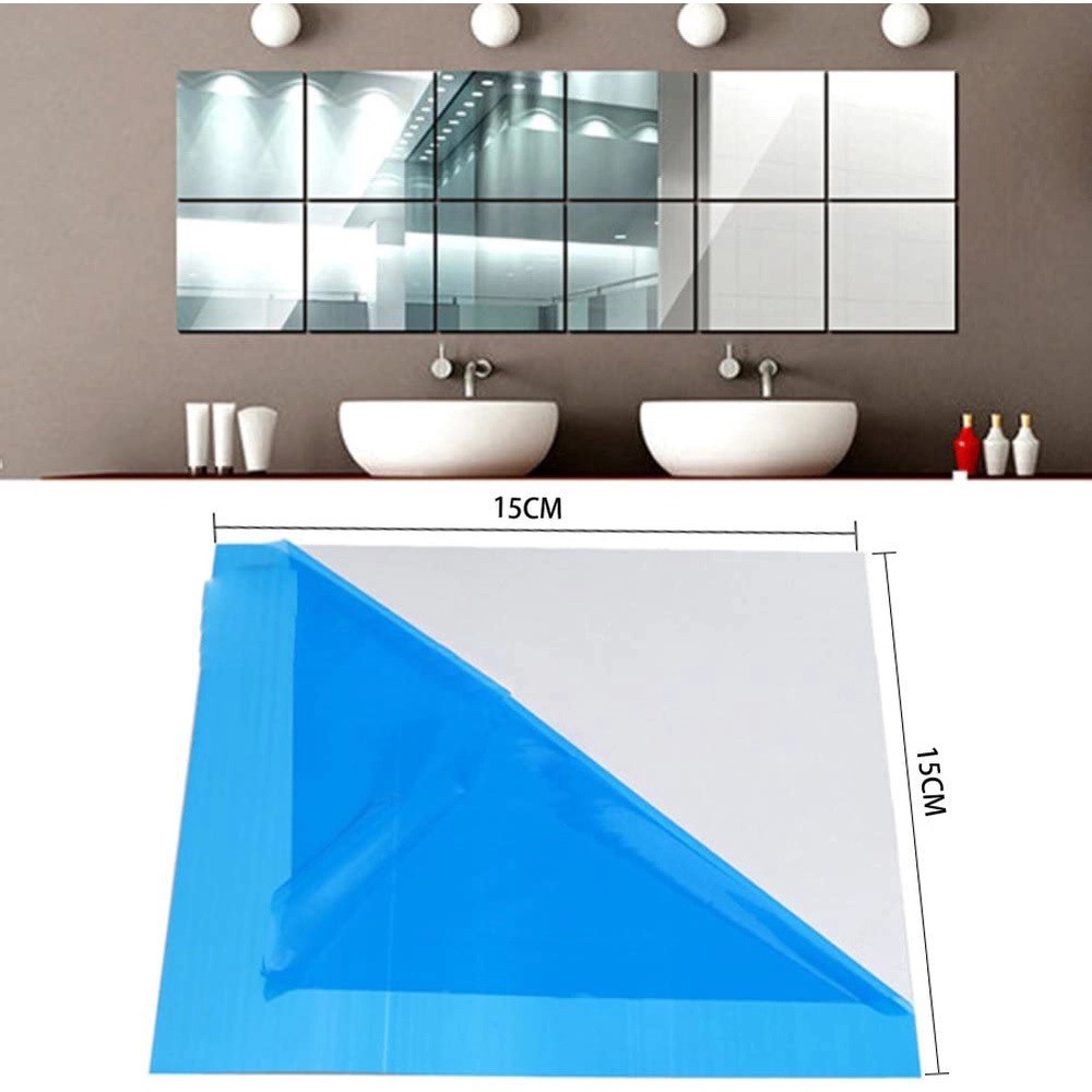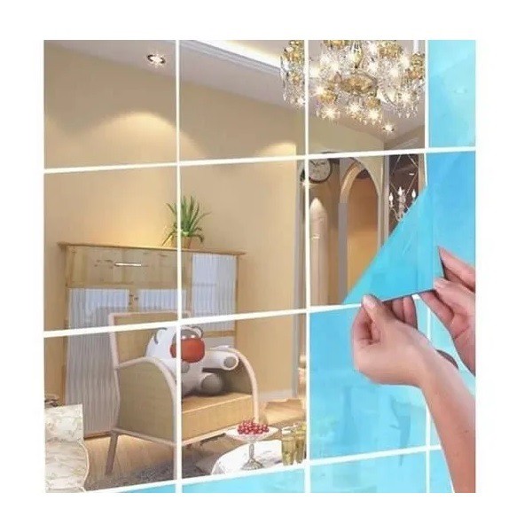 Kit 18 Adesivos De Espelho Autoadesivos Quadrado 15x15cm