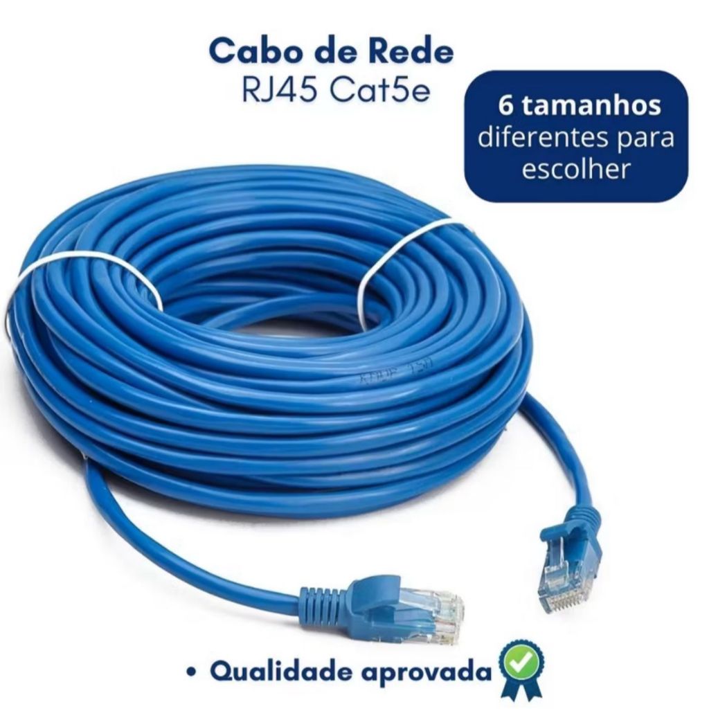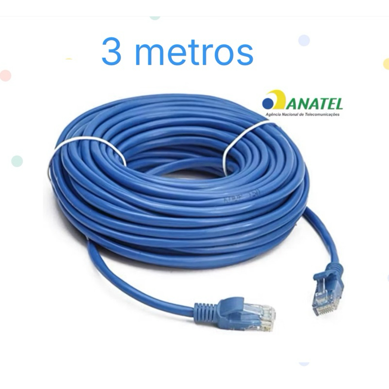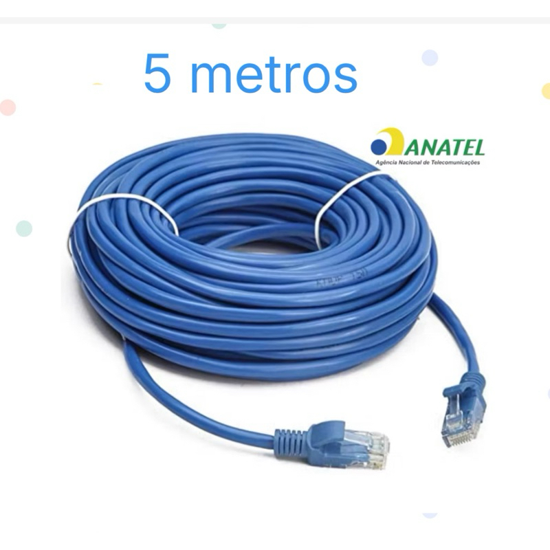 Cabo de Rede CAT5E Montado 1/3/5/10/15/20 Metros RJ45 Alta Velocidade Homologação Anatel