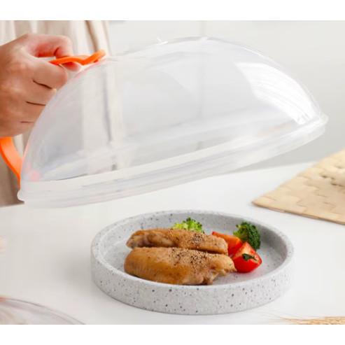 Tampa Para Microondas Protetor Alimentos Transparente Anti Sujeira Com Válvula Alça De Plástico
