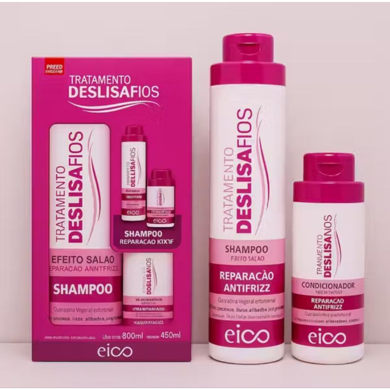 Kit Eico Deslisa Fios - Original Tamanho Família - Shampoo, Condicionador e Máscara 1KG Anti Frizz