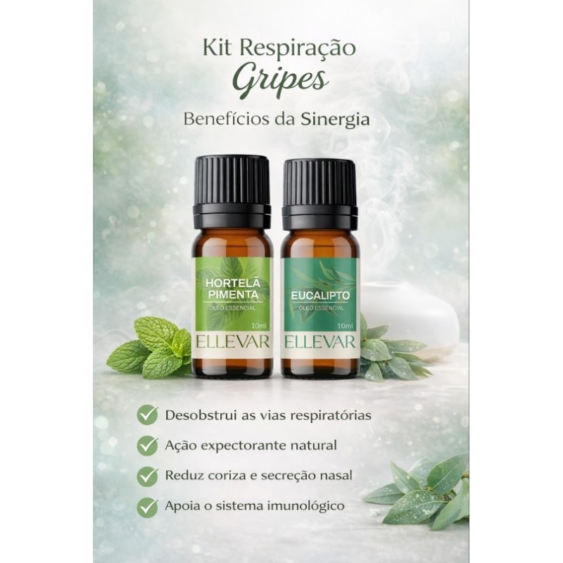 Kit Óleo Essencial Respiração Gripe - Hortelã-Pimenta + Eucalipto Globulus 10ml cada 100% Puros
