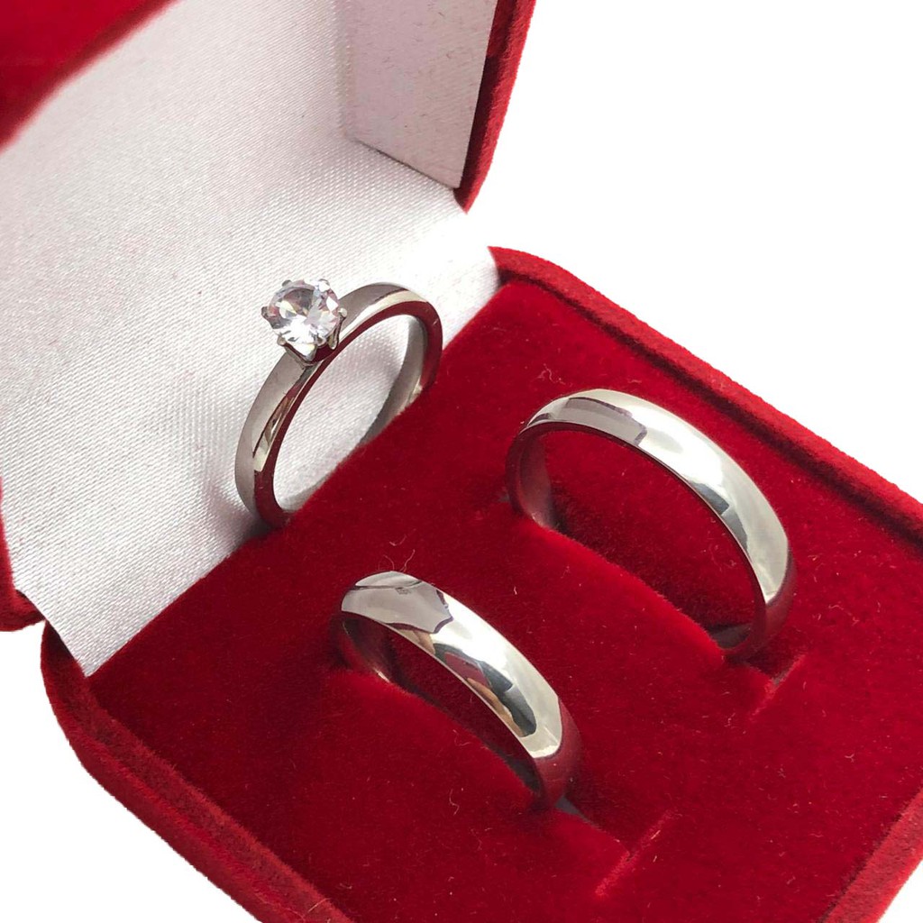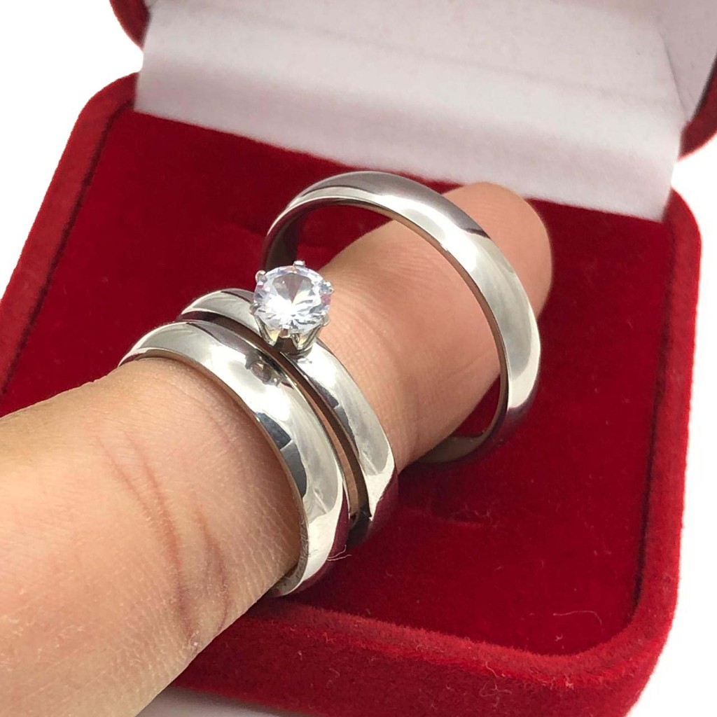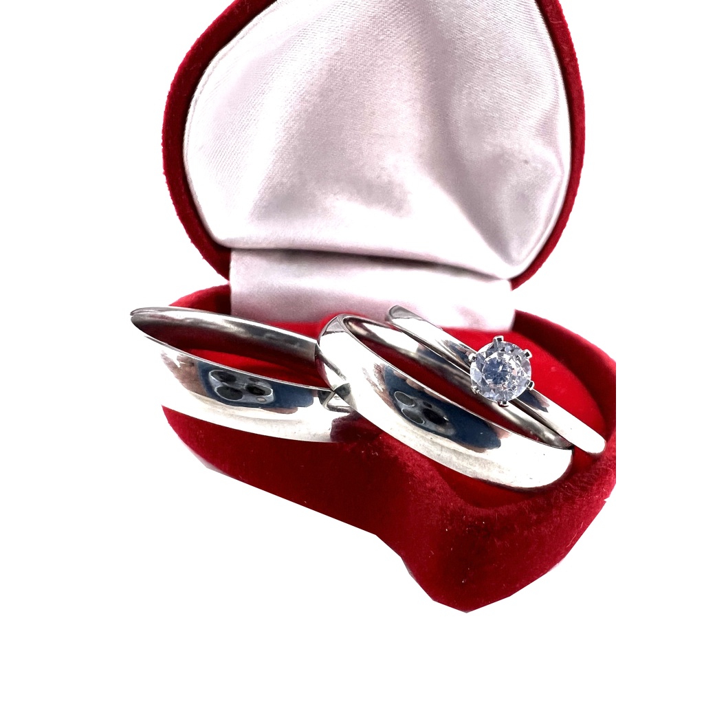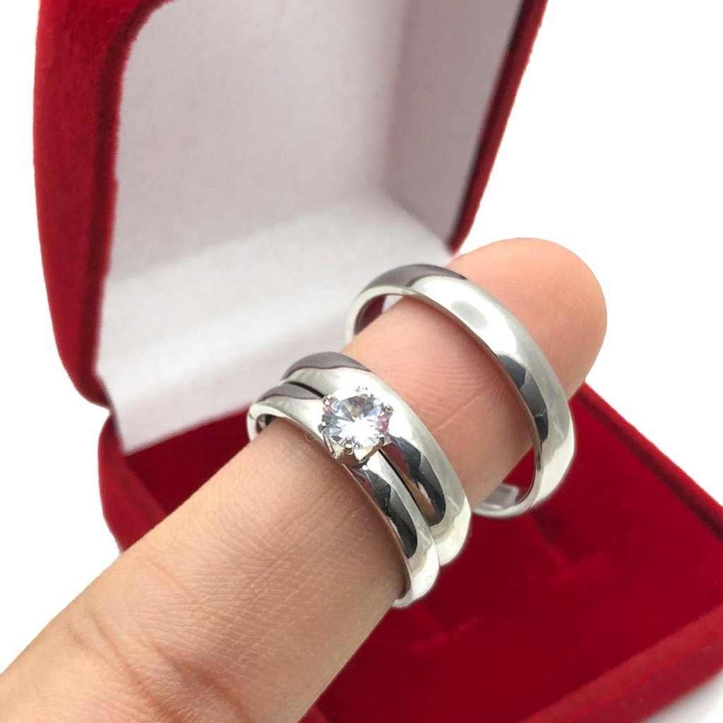 Par de Aliança Prata Fina Lisa Polida Clássica de Namoro/Compromisso/Noivado + Anel Solitário