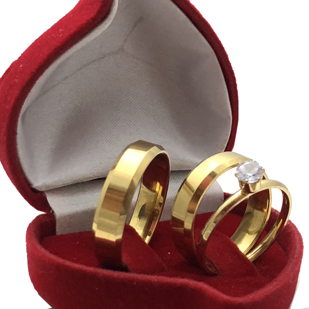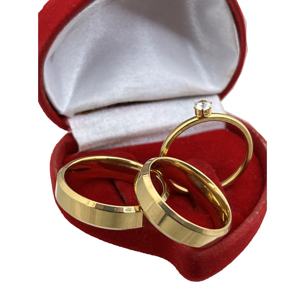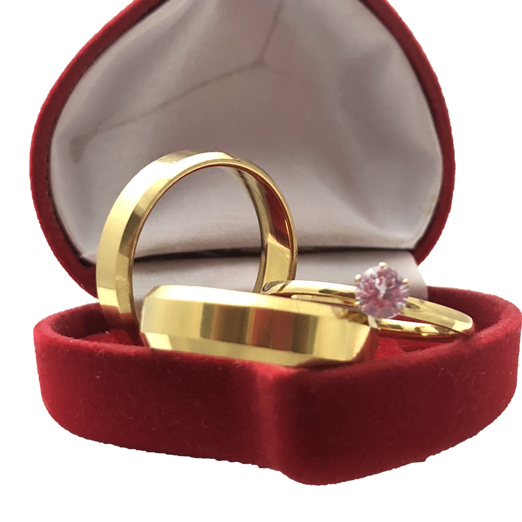 Par Aliança de Casamento/Noivado 6mm Anatômica Chanfrada Lisa + Anel Solitário