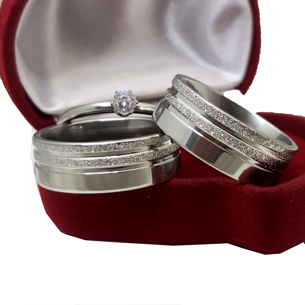 Par de Aliança Grossa de Namoro Compromisso Anatômica 8mm com Friso Jateado + Solitário