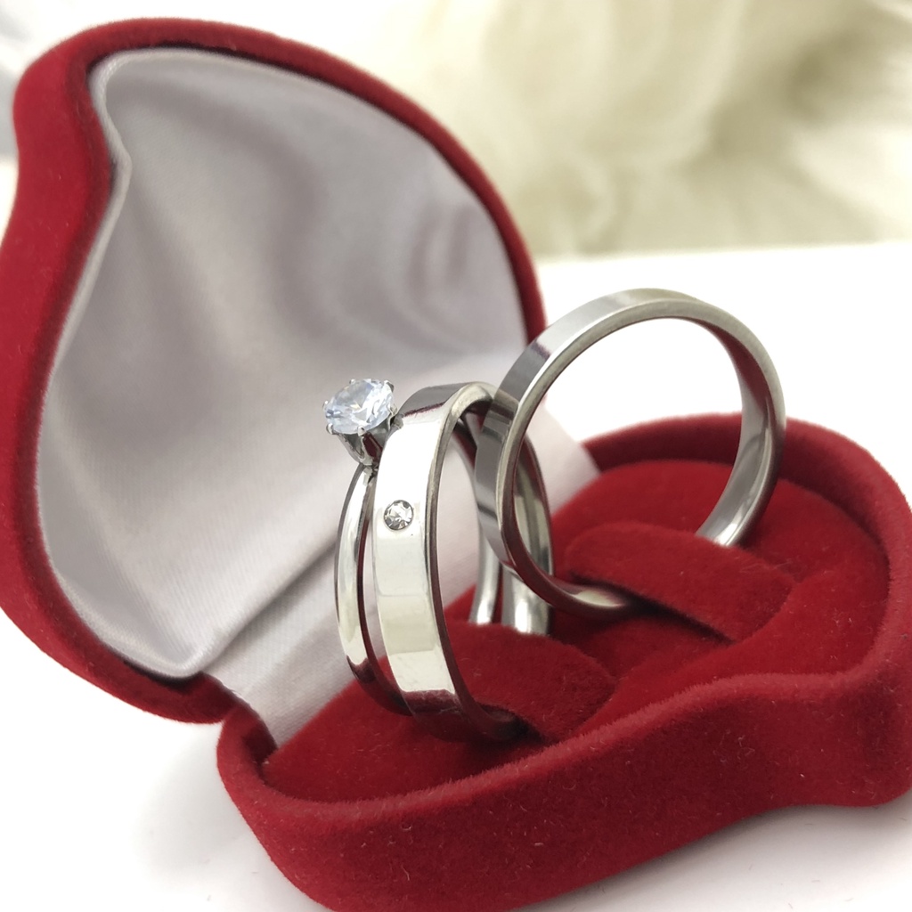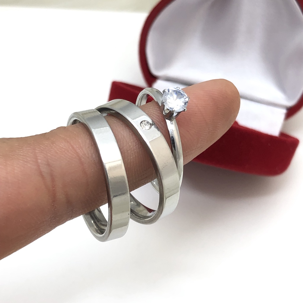 Par de Aliança de Compromisso/Namoro/Noivado fina lisa quadrada com pedrinha + Solitário