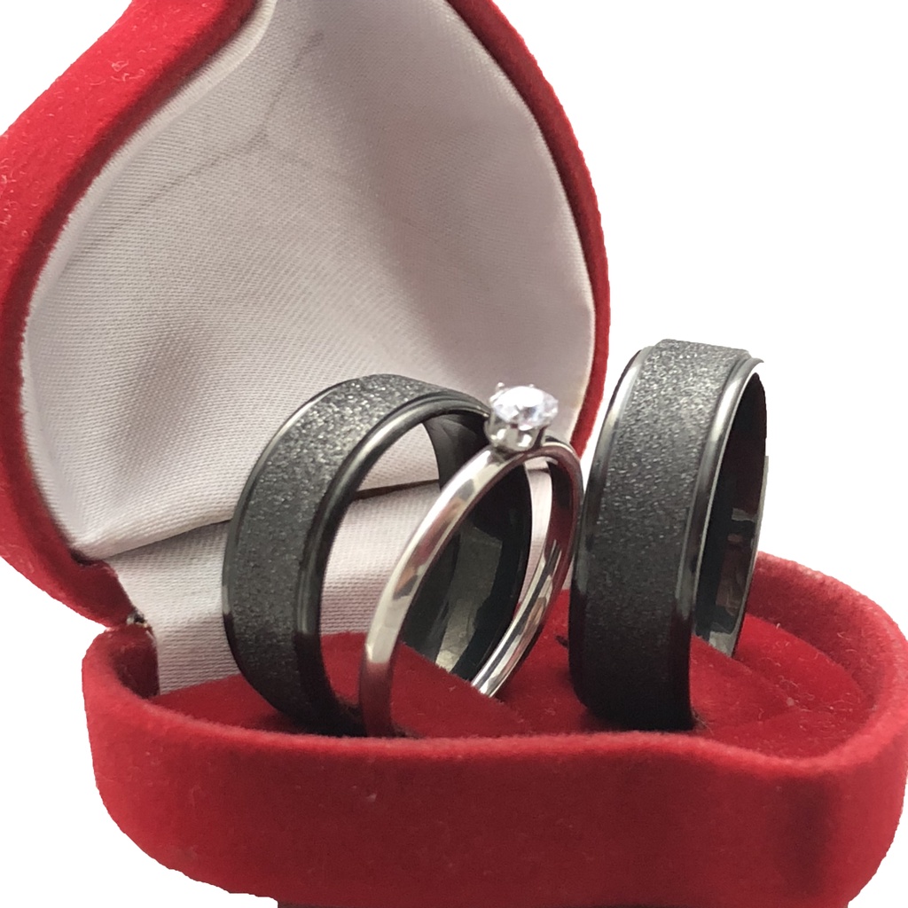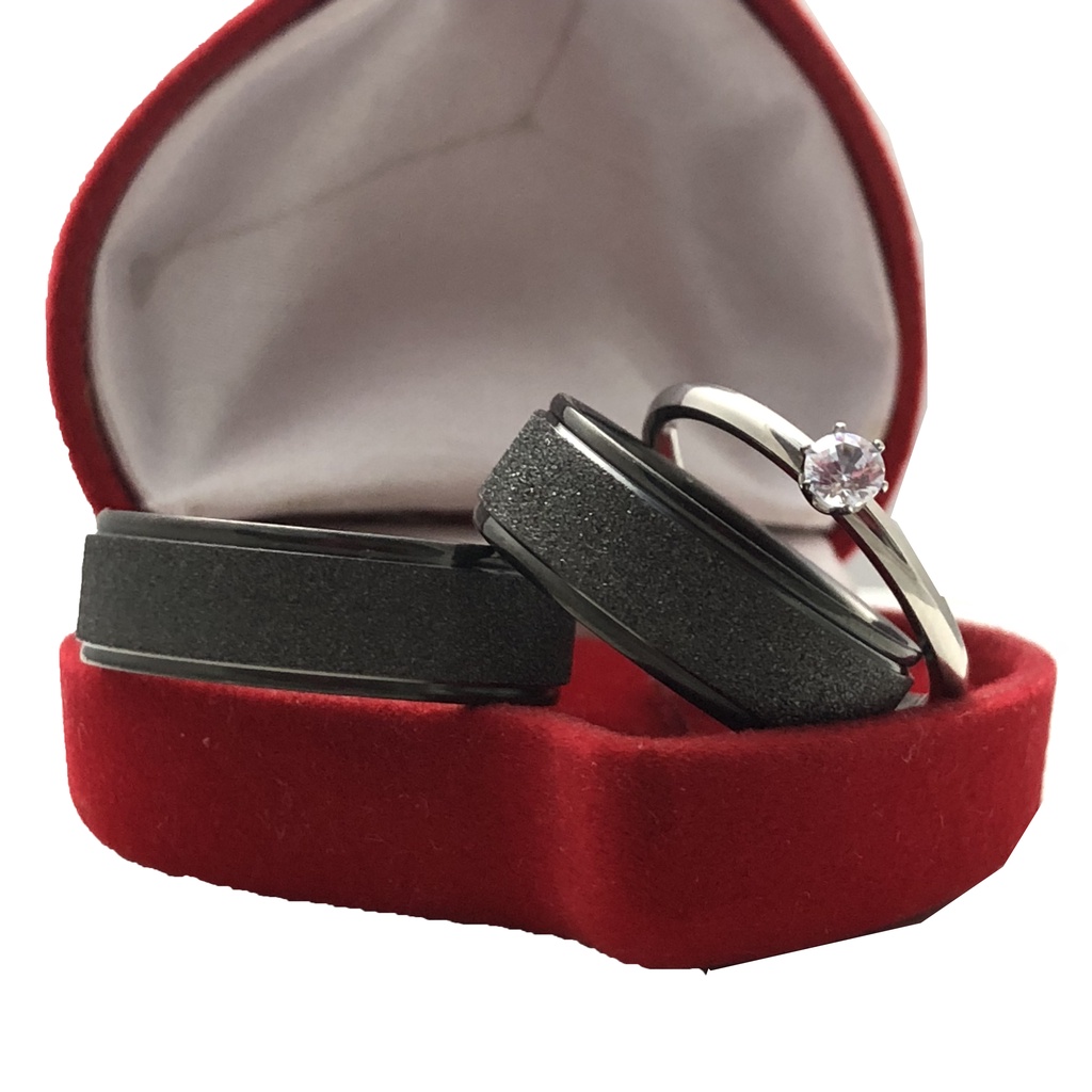 Par de Aliança Preta Black de Compromisso/Namoro Diamantada + Anel Solitário