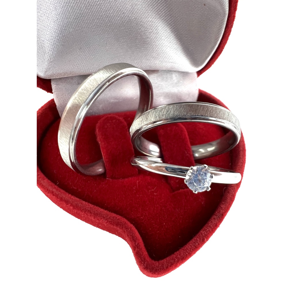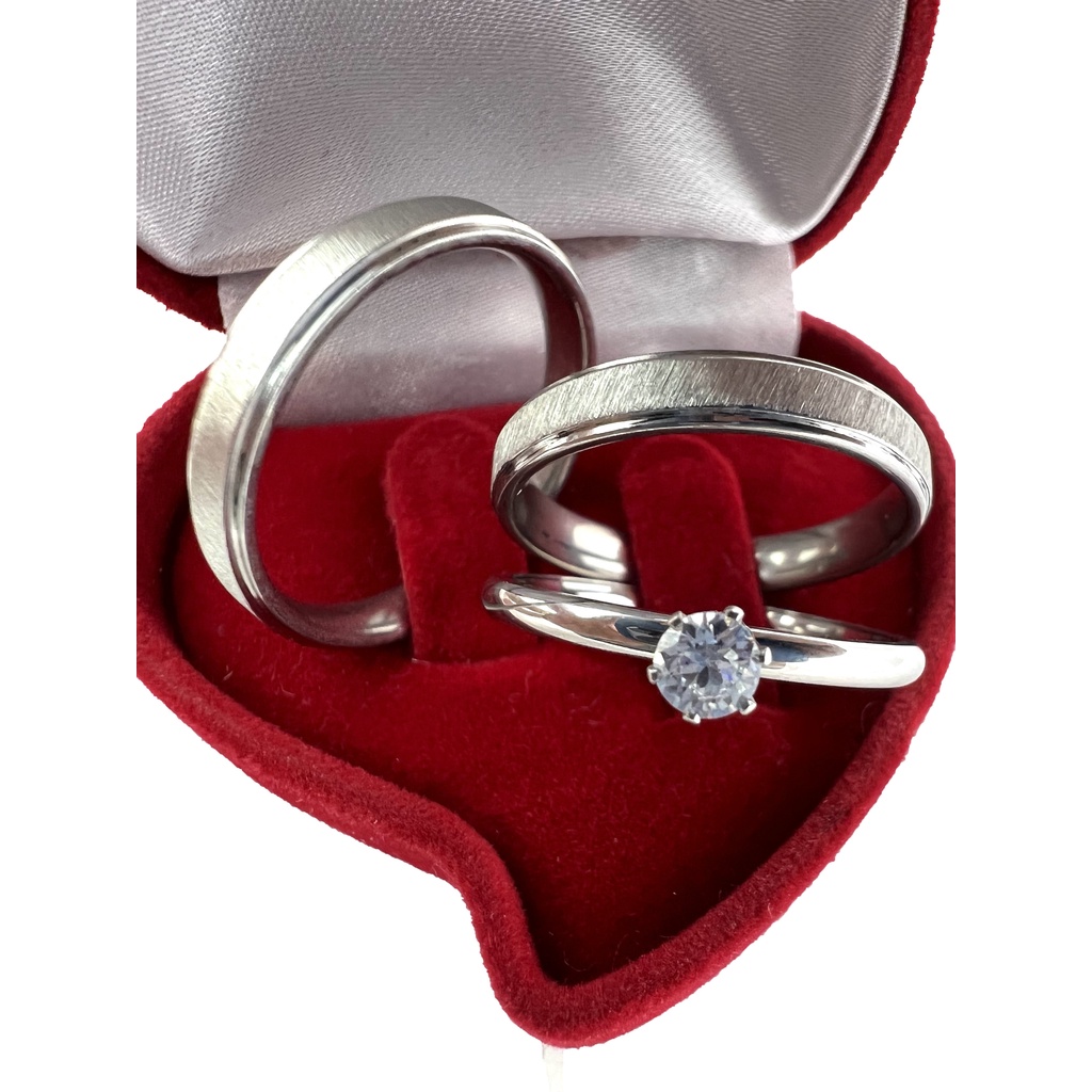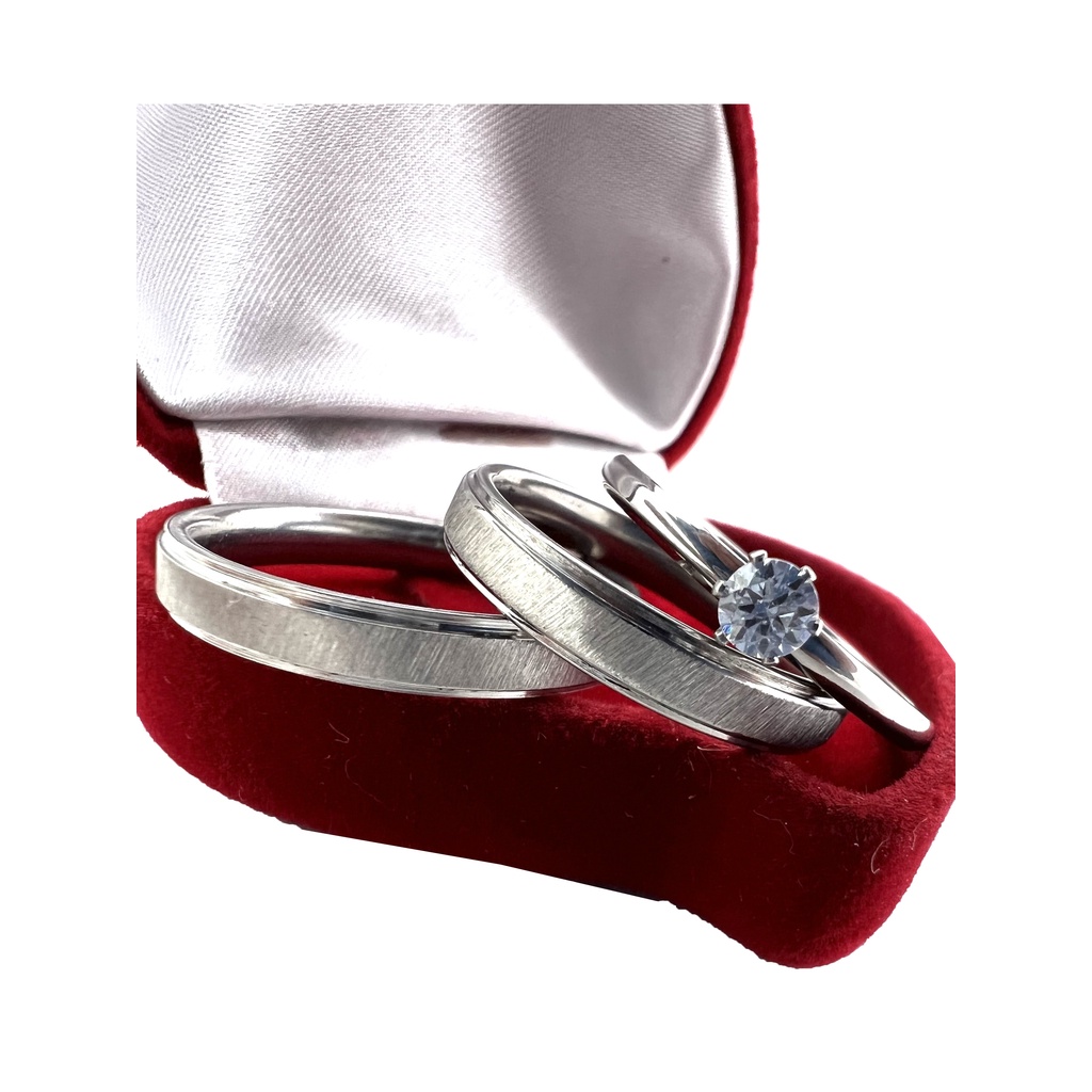 Par Aliança Prata Escovada de Namoro Fina 4mm + Solitário Pedra Zircônia