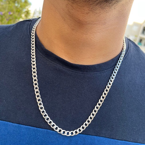 Conjunto Colar Corrente Cordão Grumet 6mm 60, 70cm + Pulseira Prata Aço Inoxidável Não Fica Preta