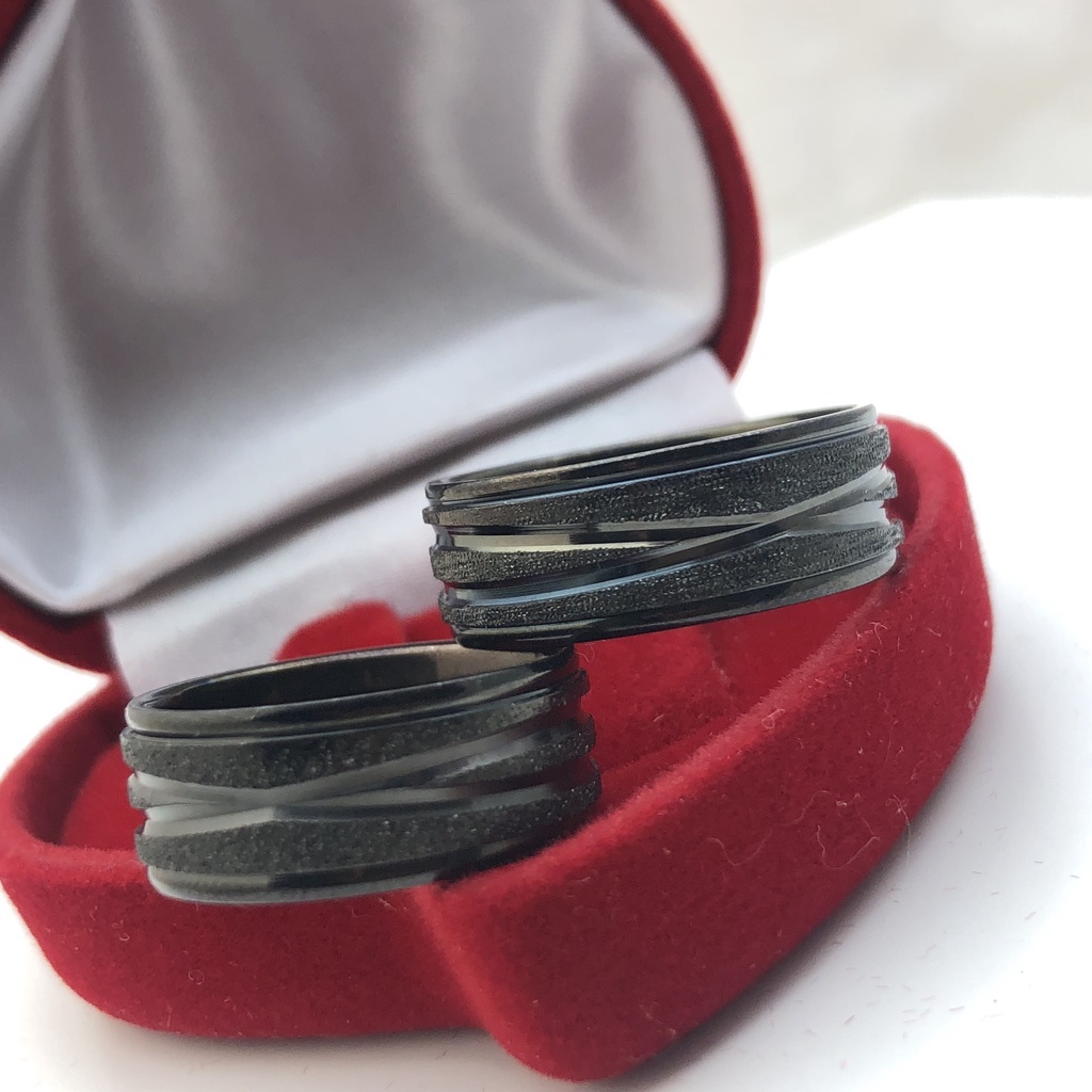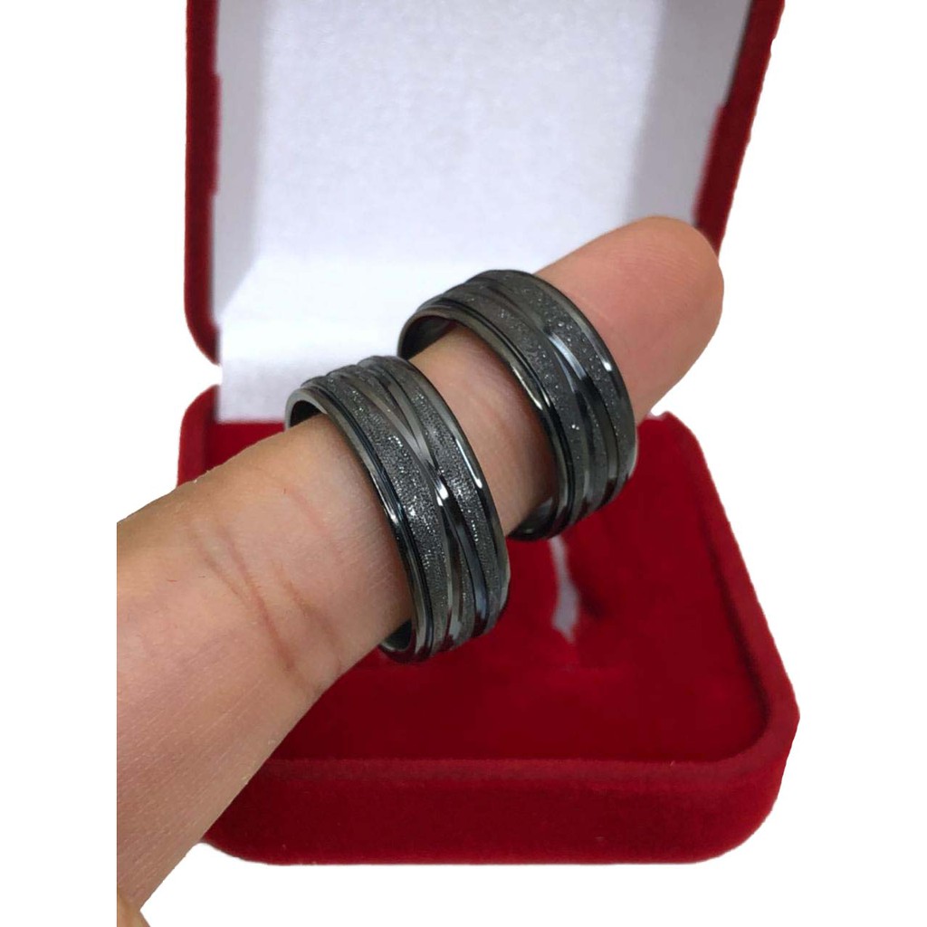 Par de Aliança Preta Infinity Diamantada de Namoro/Compromisso/Noivado Acompanha Caixinha de Veludo