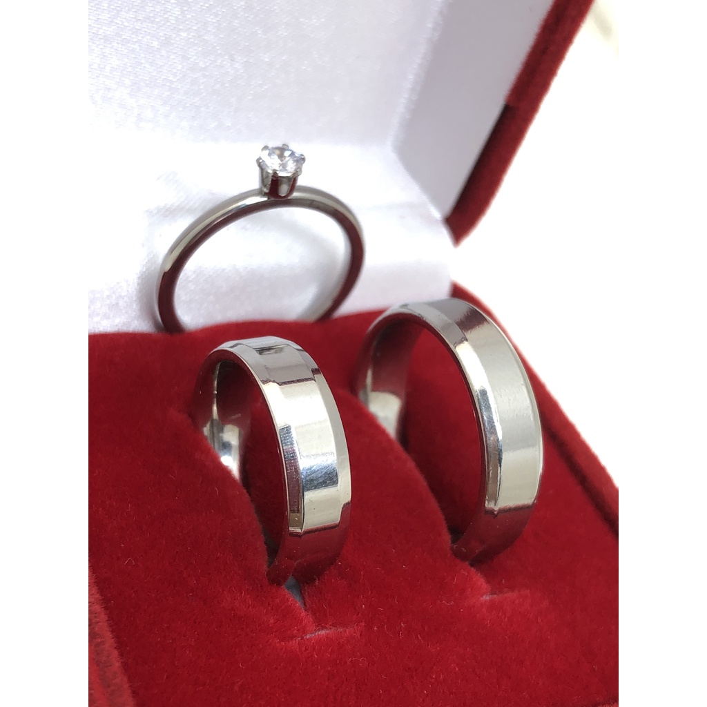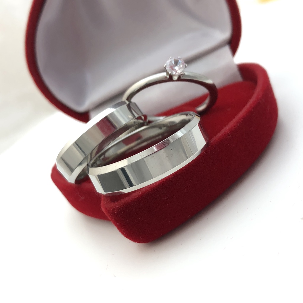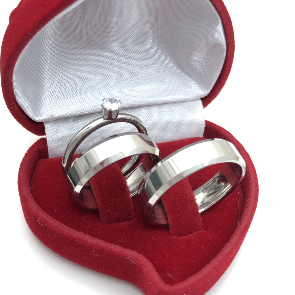Par de Aliança Anatômica Prata Grossa Lisa Polida Chanfrada Clássica de Namoro/Compromisso/Noivado + Anel Solitário.