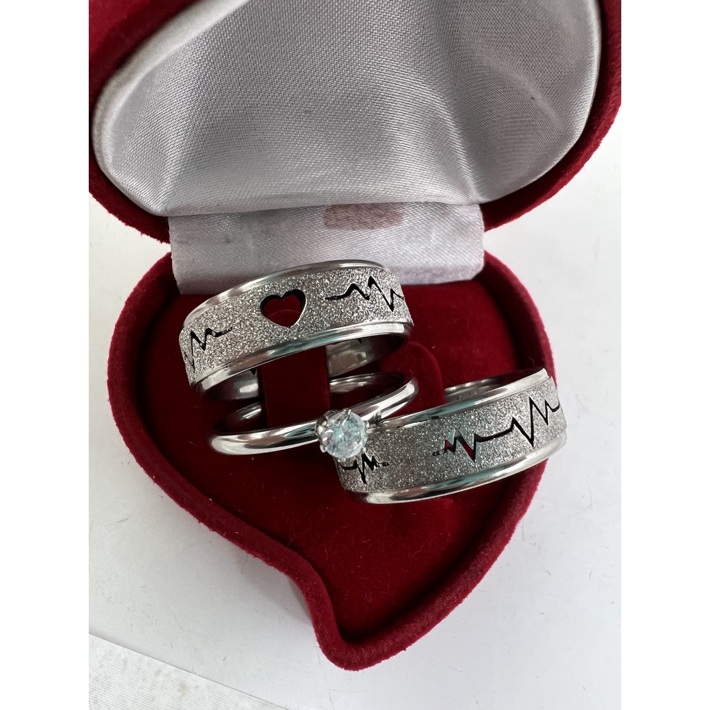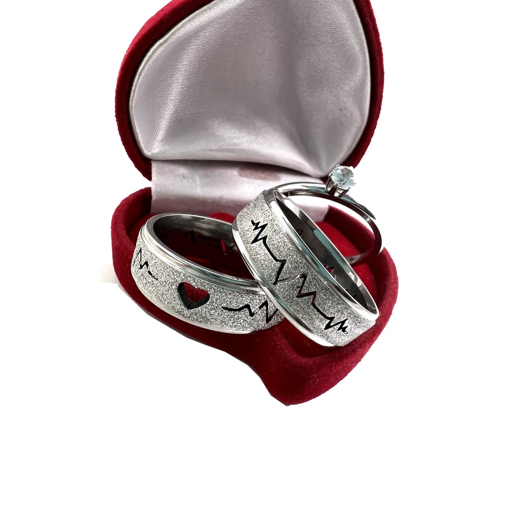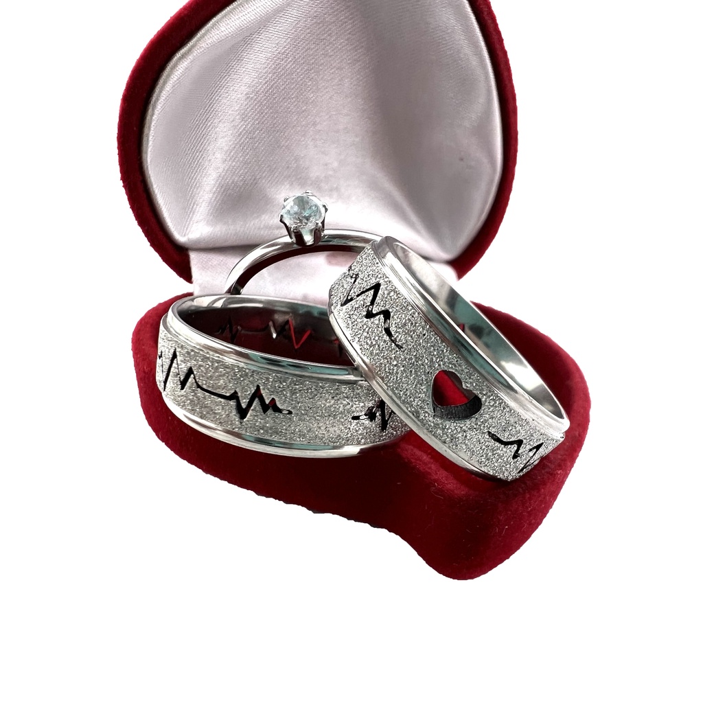 Par de Aliança Batimento Coração Vazado Prata Diamantada de Namoro/Compromisso/Noivado