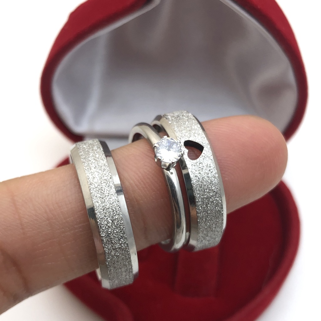 Aliança de Namoro 6mm Jateada Coração Vazado + Solitário