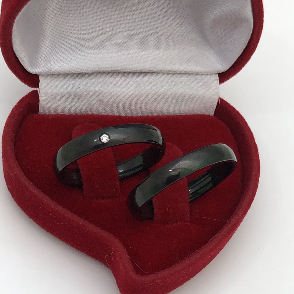 Par de Aliança preta de compromisso\namoro com pedrinha 4mm