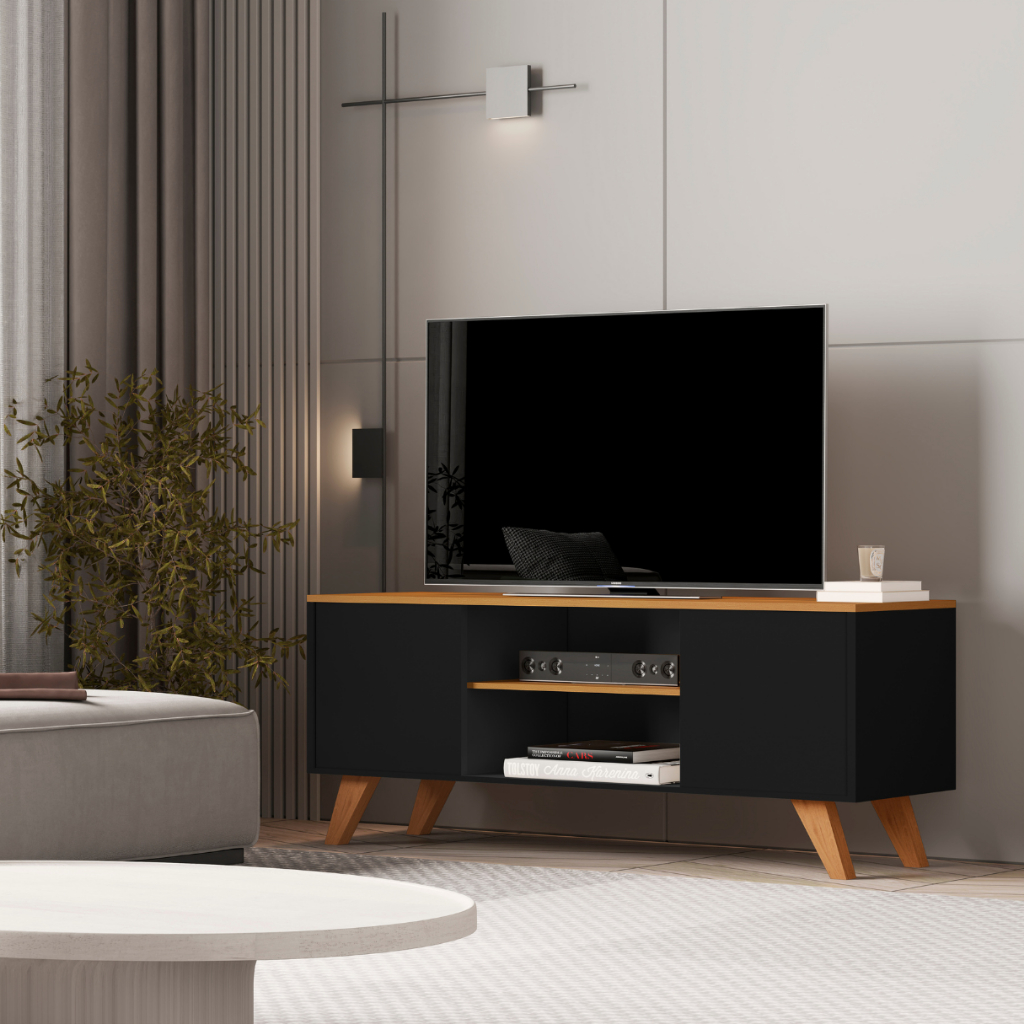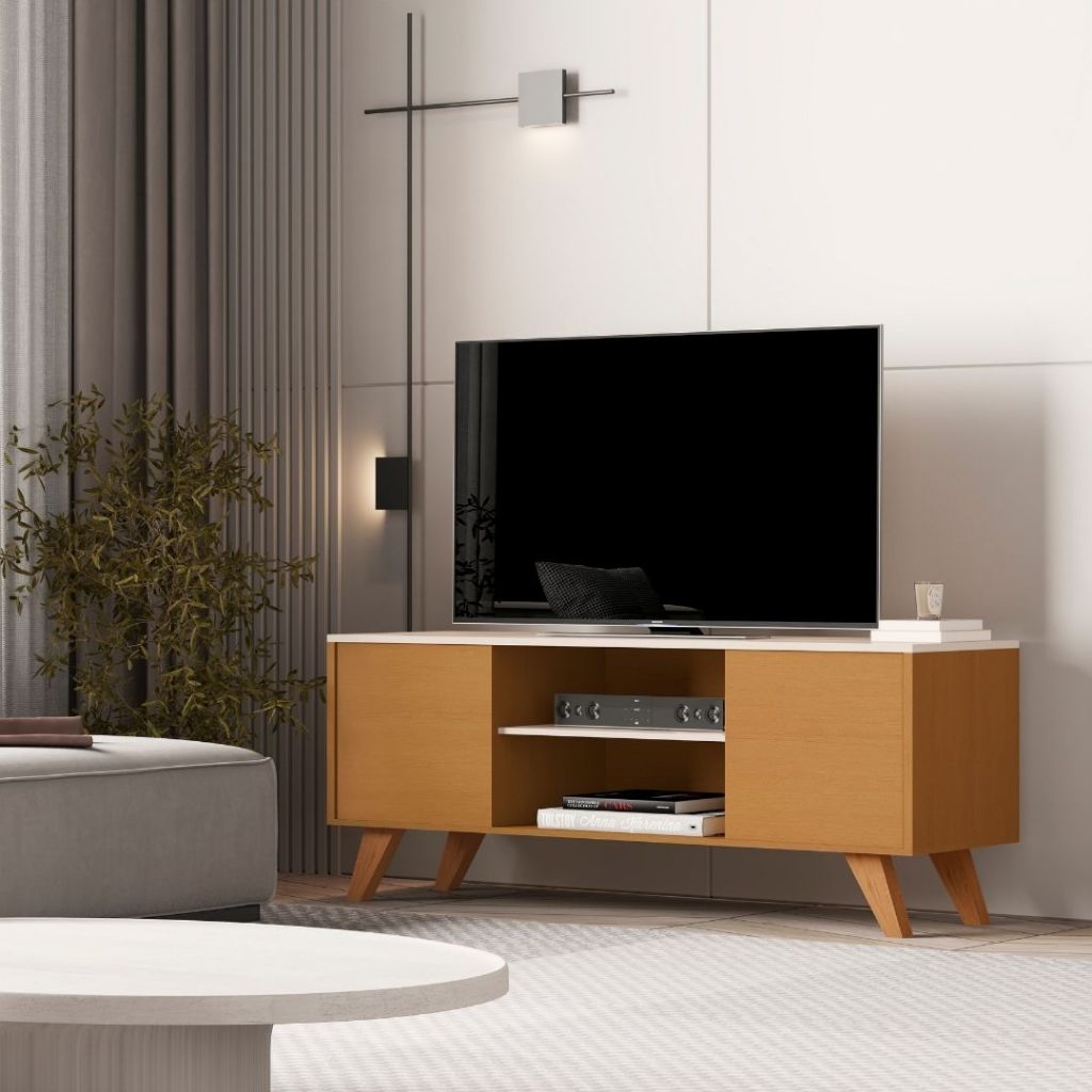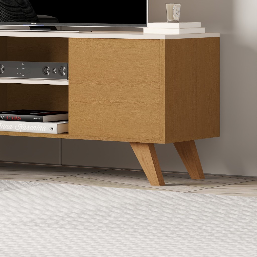 Rack Para Sala de Estar 2 Portas e Pés de Madeira Maciça