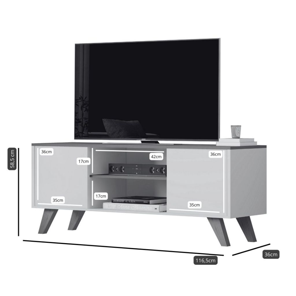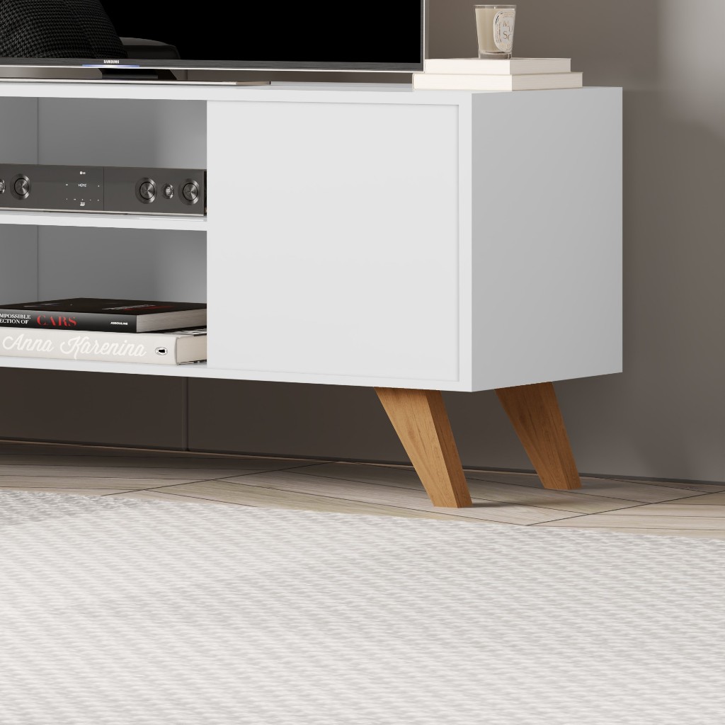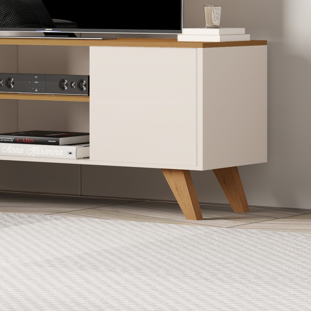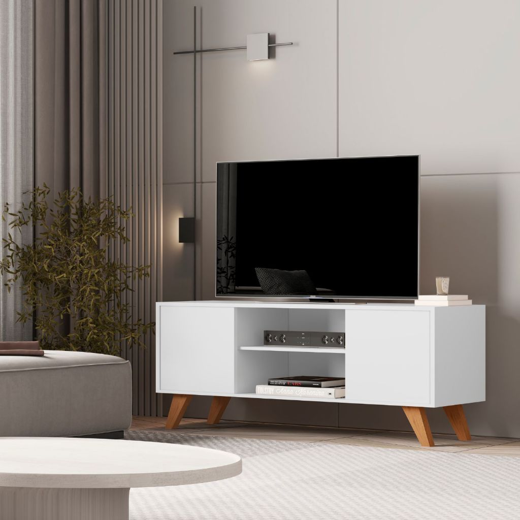Rack Para Sala de Estar 2 Portas e Pés de Madeira Maciça