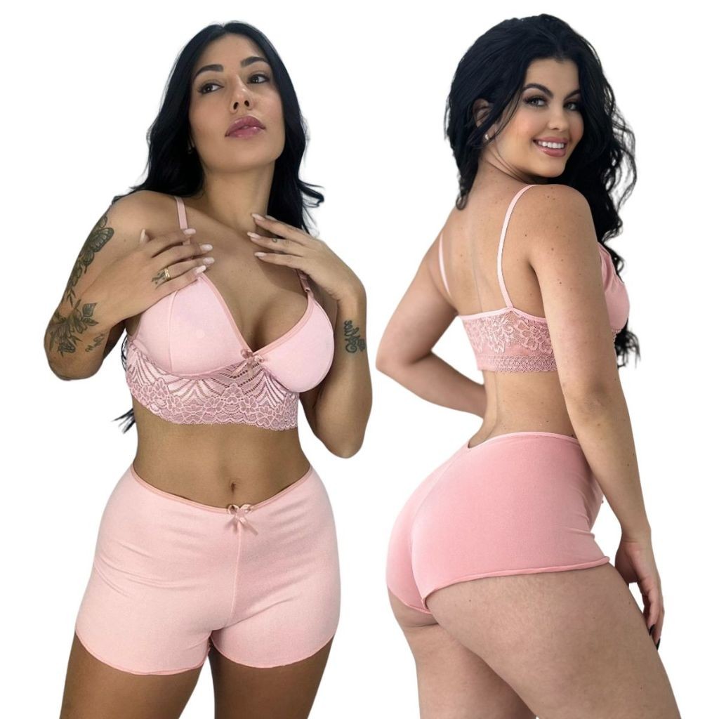 Short Doll Feminino Liso Baby Renda Pijama Dormir Lingerie Curto Adulto Moda Roupa Dormir 605