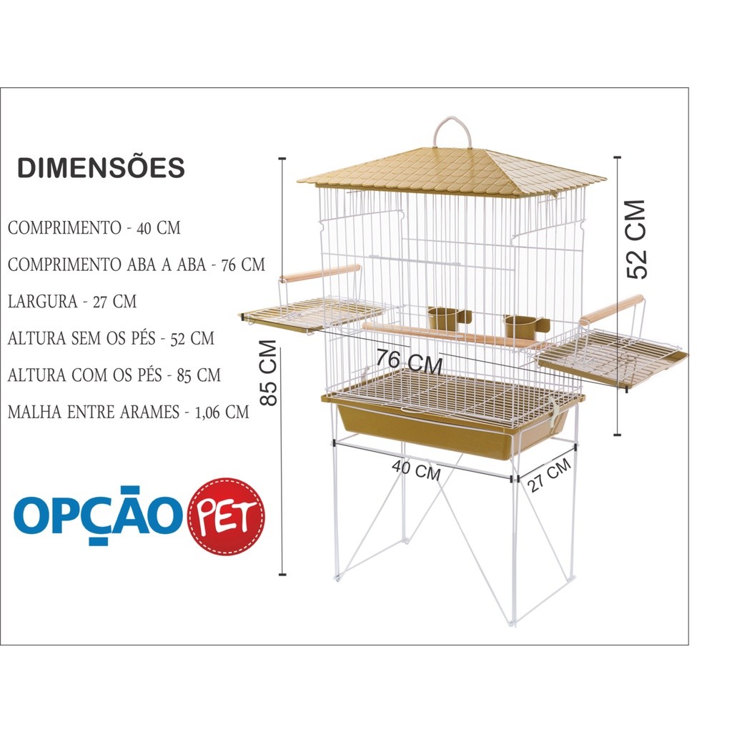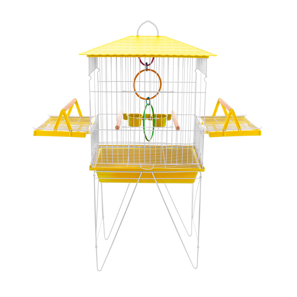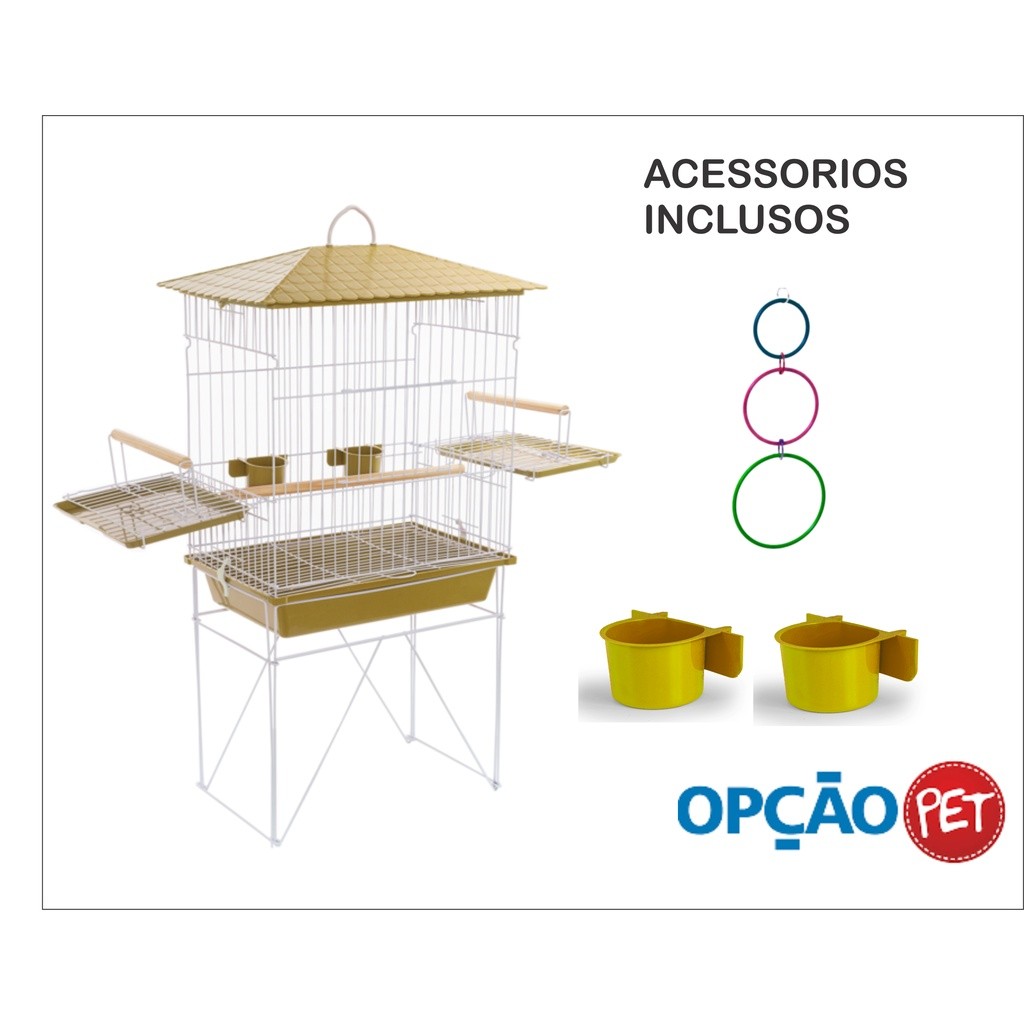 Gaiola Viveiro para Calopsita com bandejas laterais + ACESSÓRIO JOGO DE ARGOLA COLORIDA mansa teto plástico Amarelo - OP