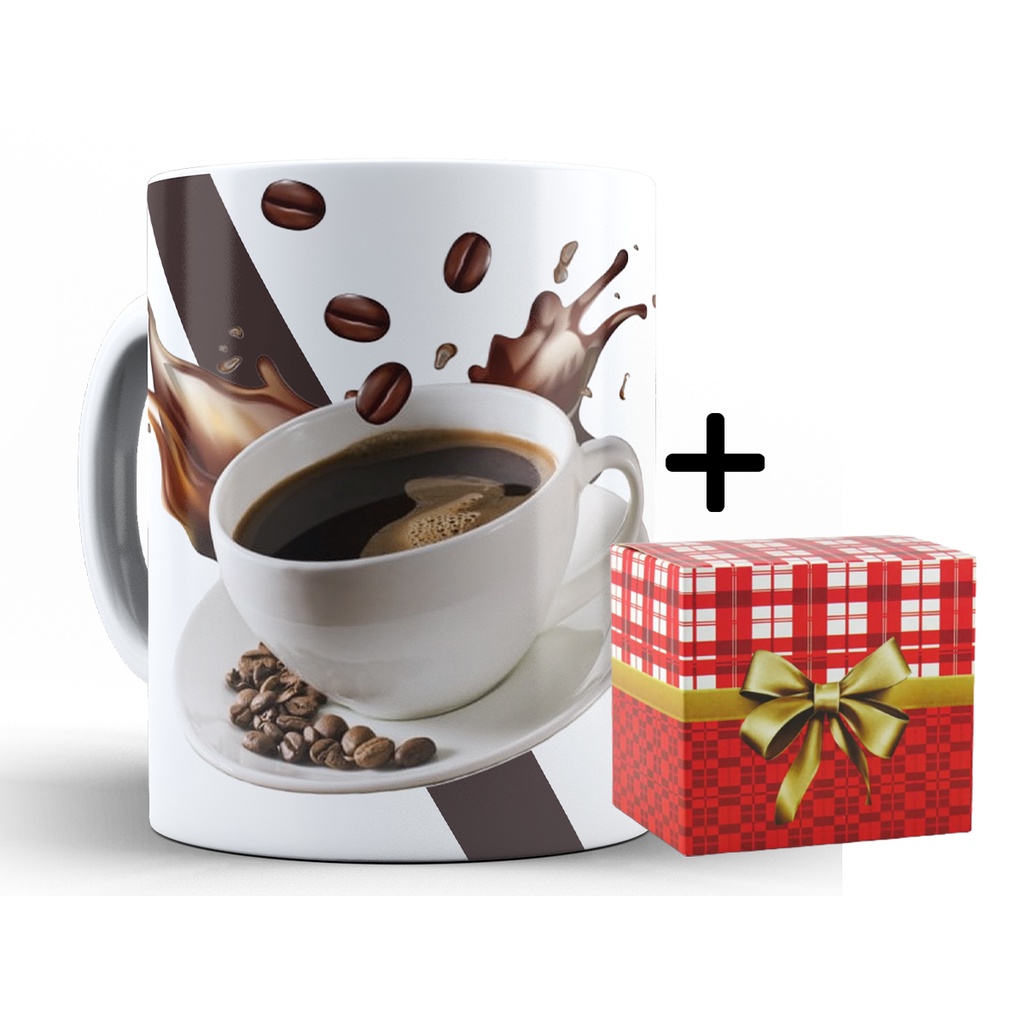 Caneca Café Grãos - Xícara Personalizada 325ML Porcelana Cerâmica