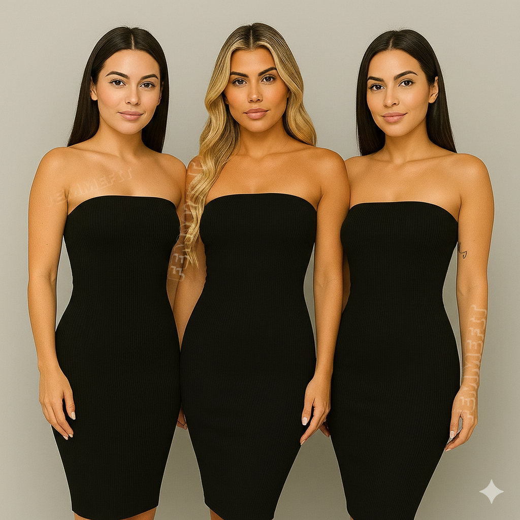 KIT 3 Vestido Malha Canelada Midi Tubinho Tomara Que Caia