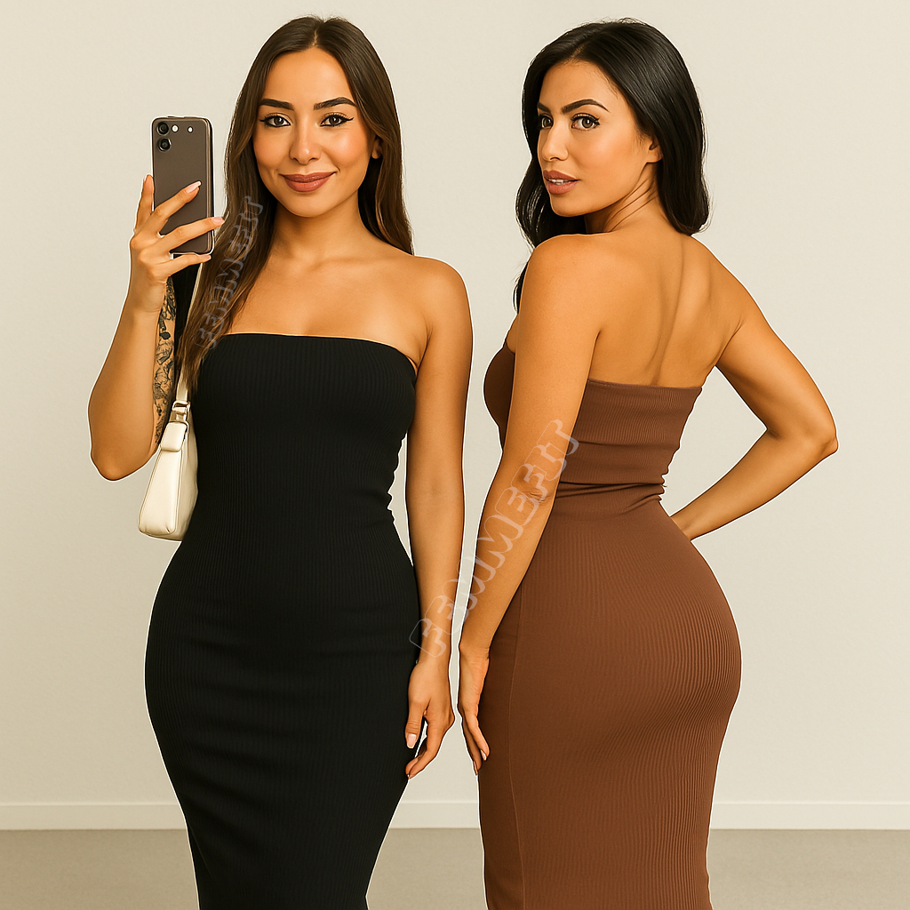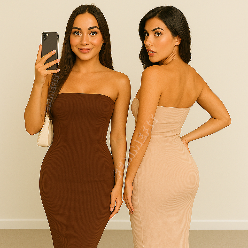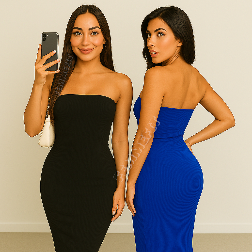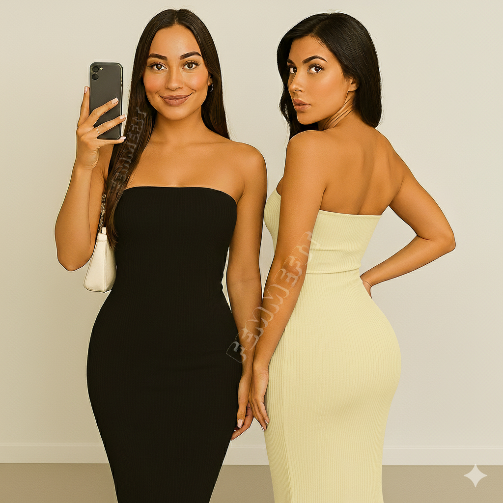 KIT Vestido Malha Canelada Midi Tomara Que Caia Tubinho Feminino