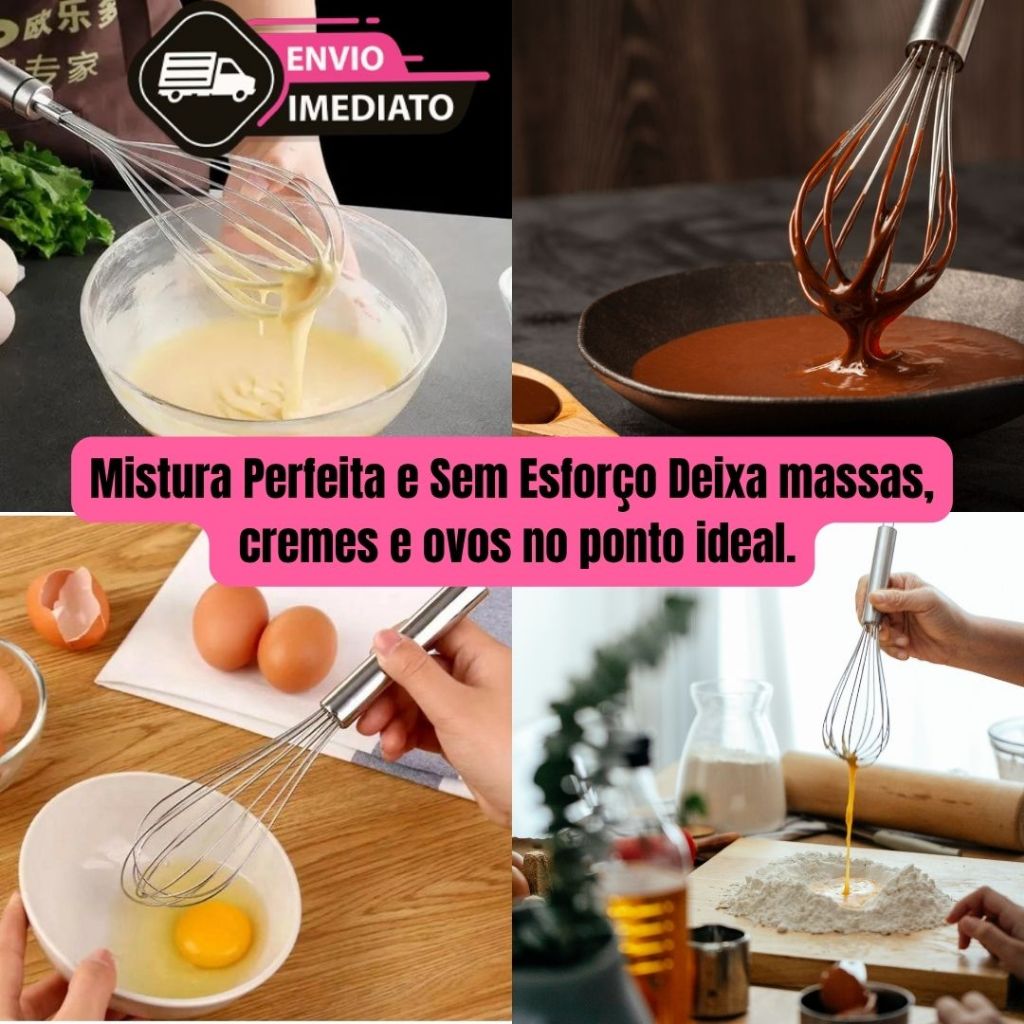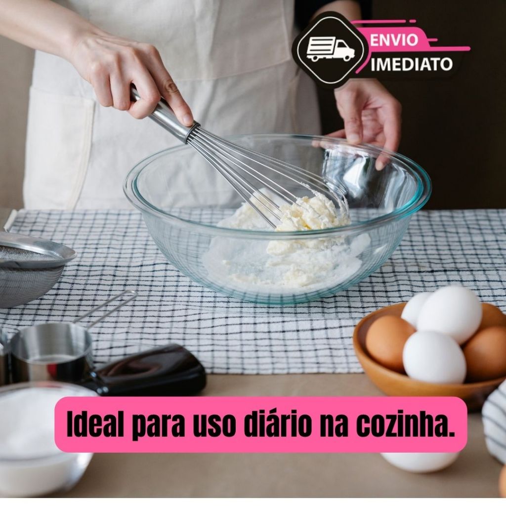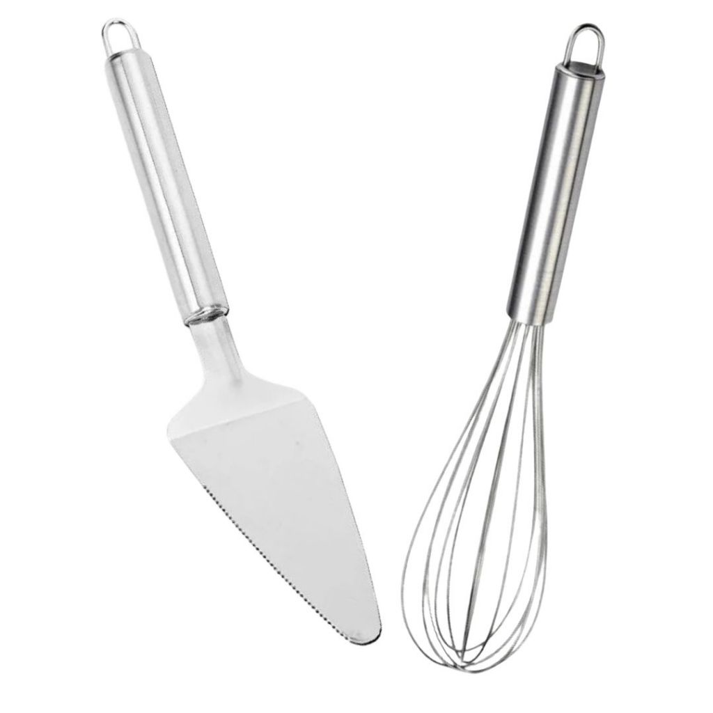 Kit Fouet Batedor de Arame + Espátula de Bolo Cozinha Confeitaria Inox