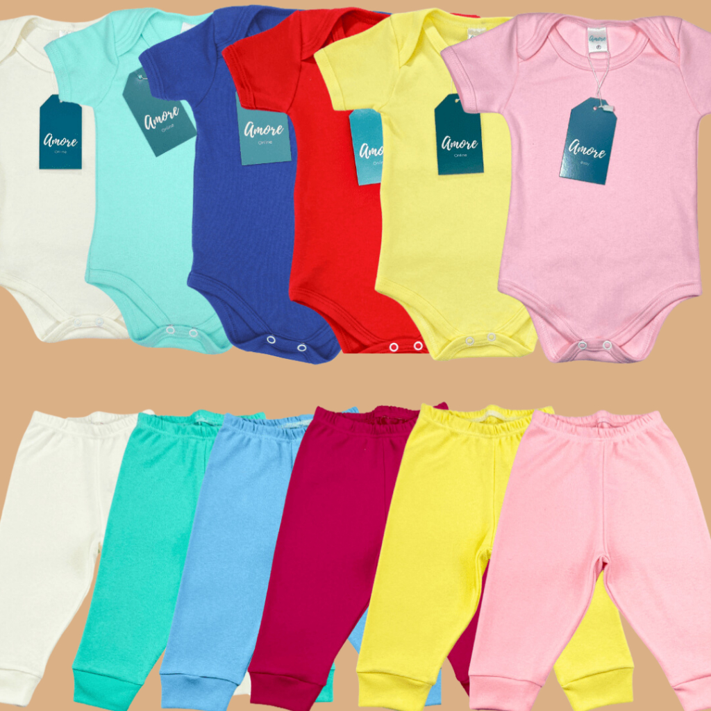 Roupa Kit 6 Peças Bebê Body Manga Curta e Calça Menina Menino Infantil