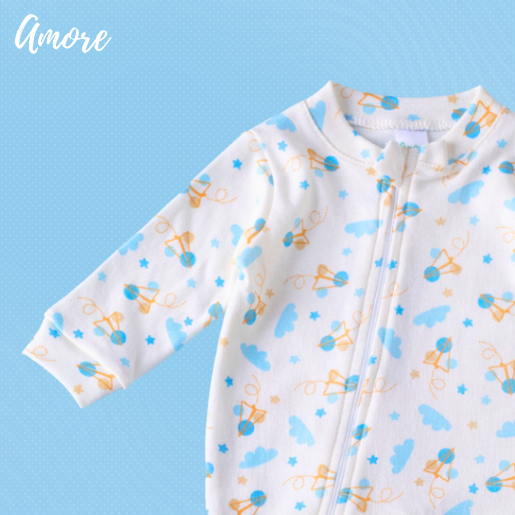 Kit 3 Macacão Roupas Bebê Amore Vira Pé com Zíper Aviãozinho 100% Algodão